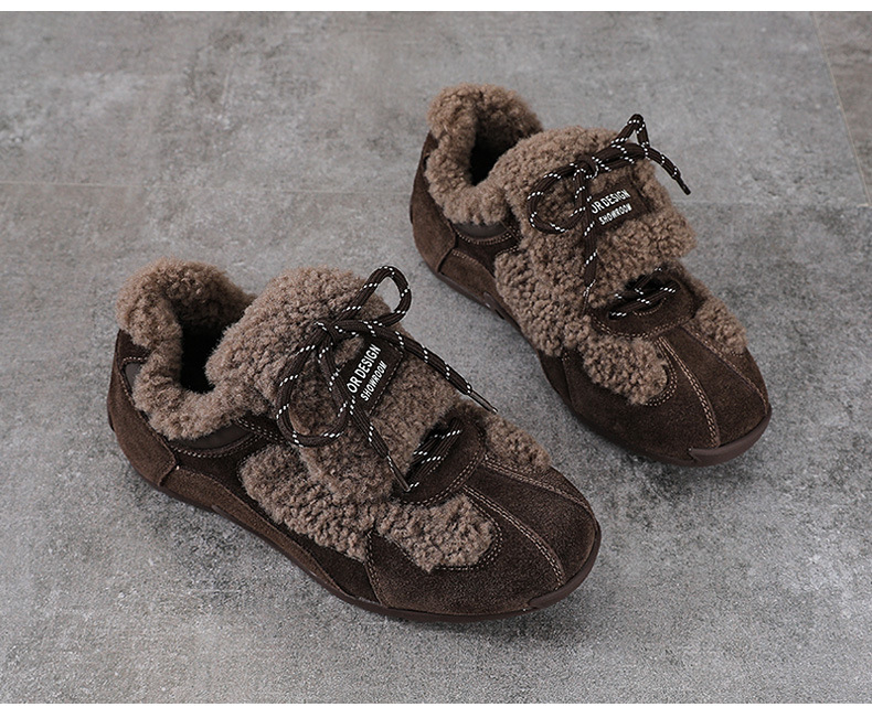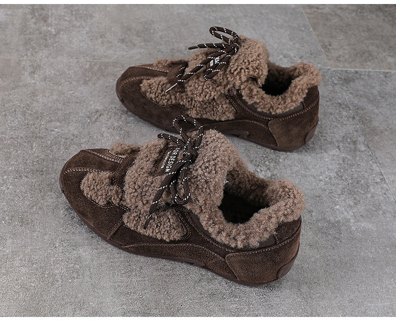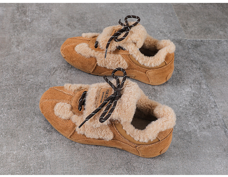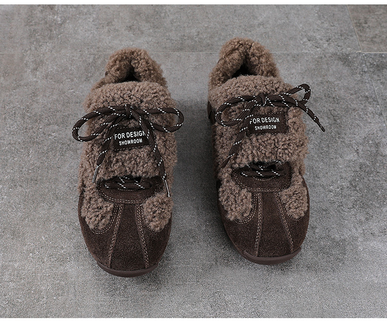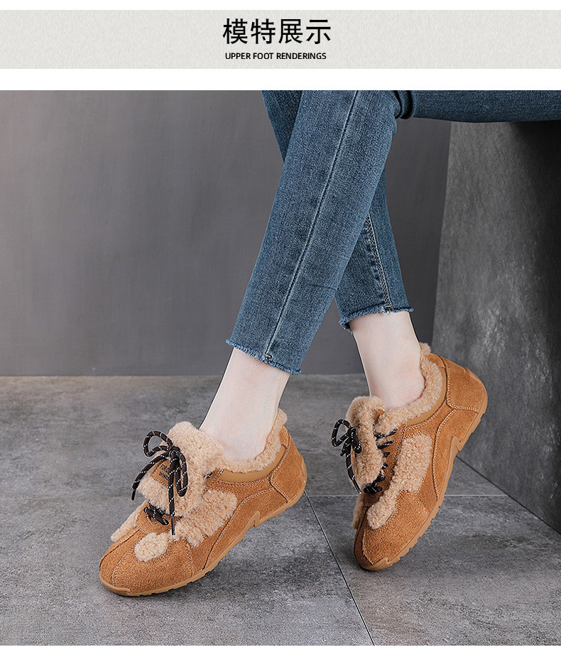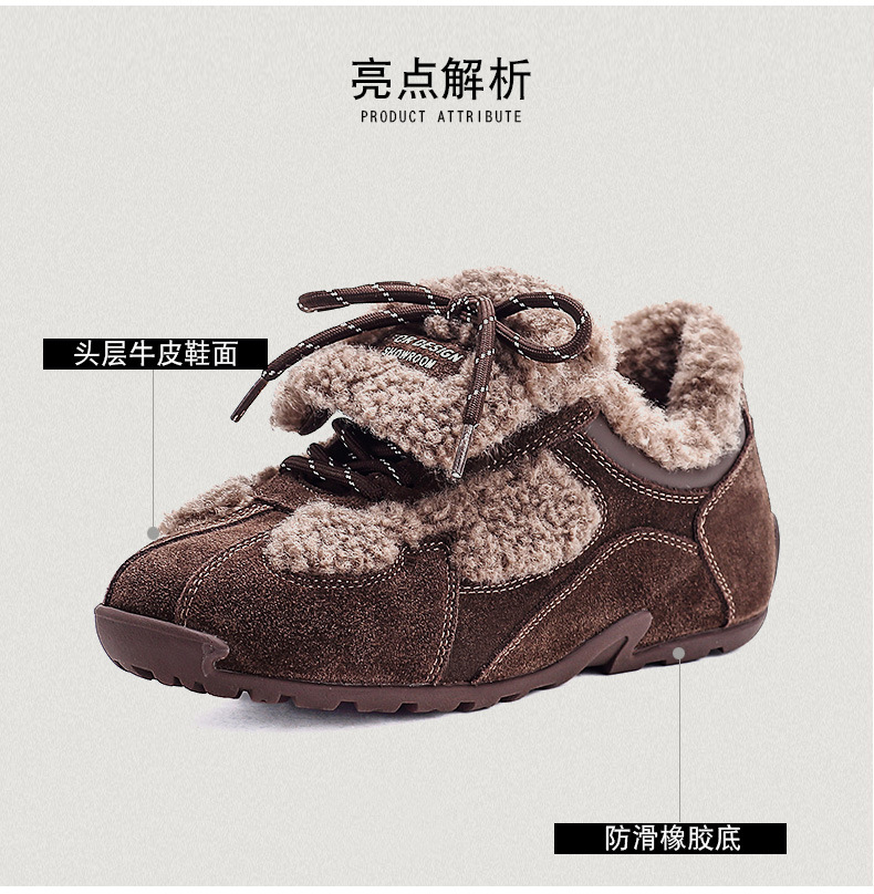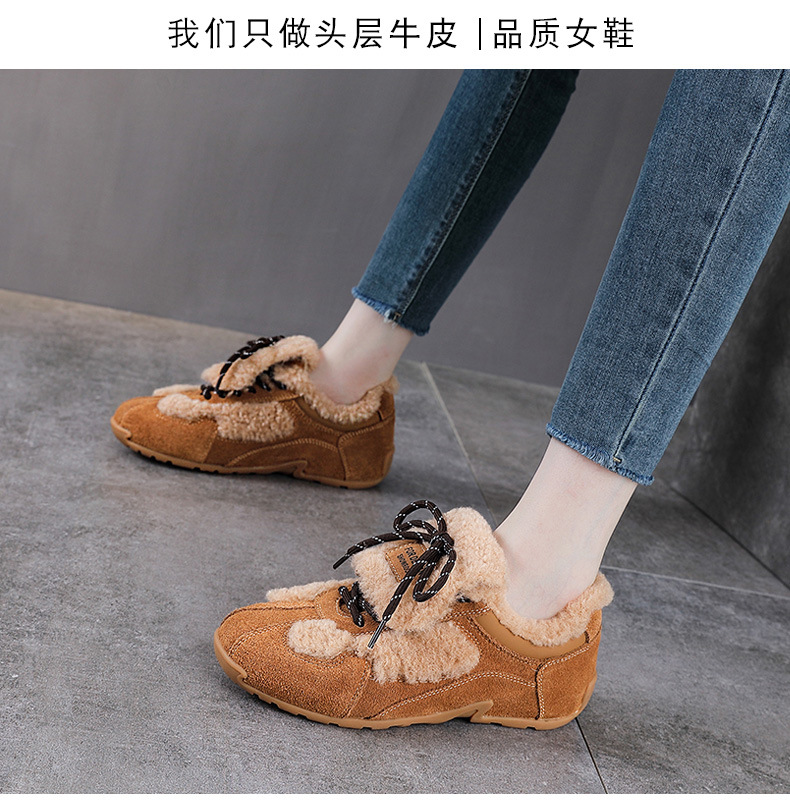 YR 2919真皮复古德训鞋羊羔毛毛休闲鞋系带阿甘鞋加绒棉鞋 商品图4