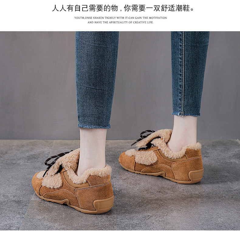 YR 2919真皮复古德训鞋羊羔毛毛休闲鞋系带阿甘鞋加绒棉鞋 商品图3