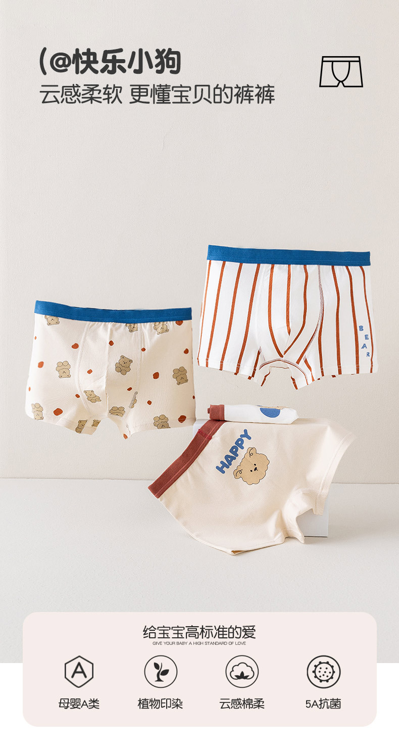 【抑菌5A级,给宝宝高标准的爱~】男童春夏纯棉内裤 儿童a类棉四角裤 宝宝夏季薄款 不夹屁屁平角短裤-QQ