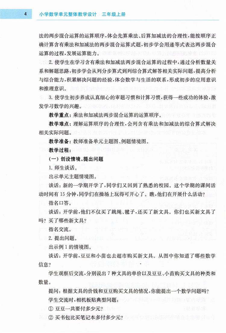 2025秋 小学数学单元整体教学设计 三年级上册 内含PPT激活卡 含数学课件数字资源 教师用书