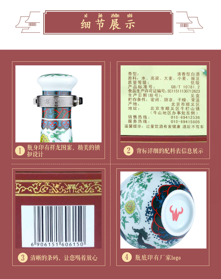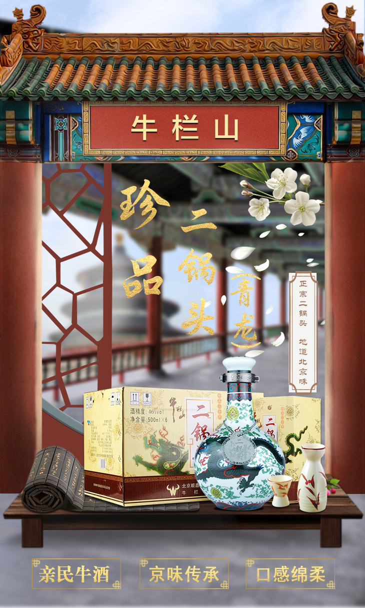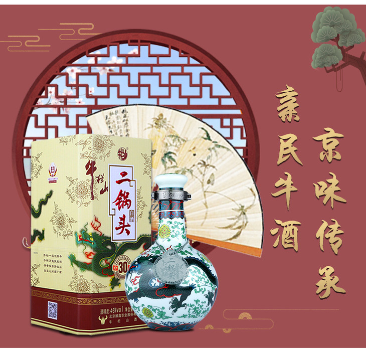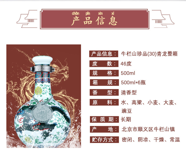 【推荐】牛栏山 白酒 清香型 二锅头 珍品三十(30)青龙 46度 500ml*6瓶 整箱装(内含三个礼品袋)