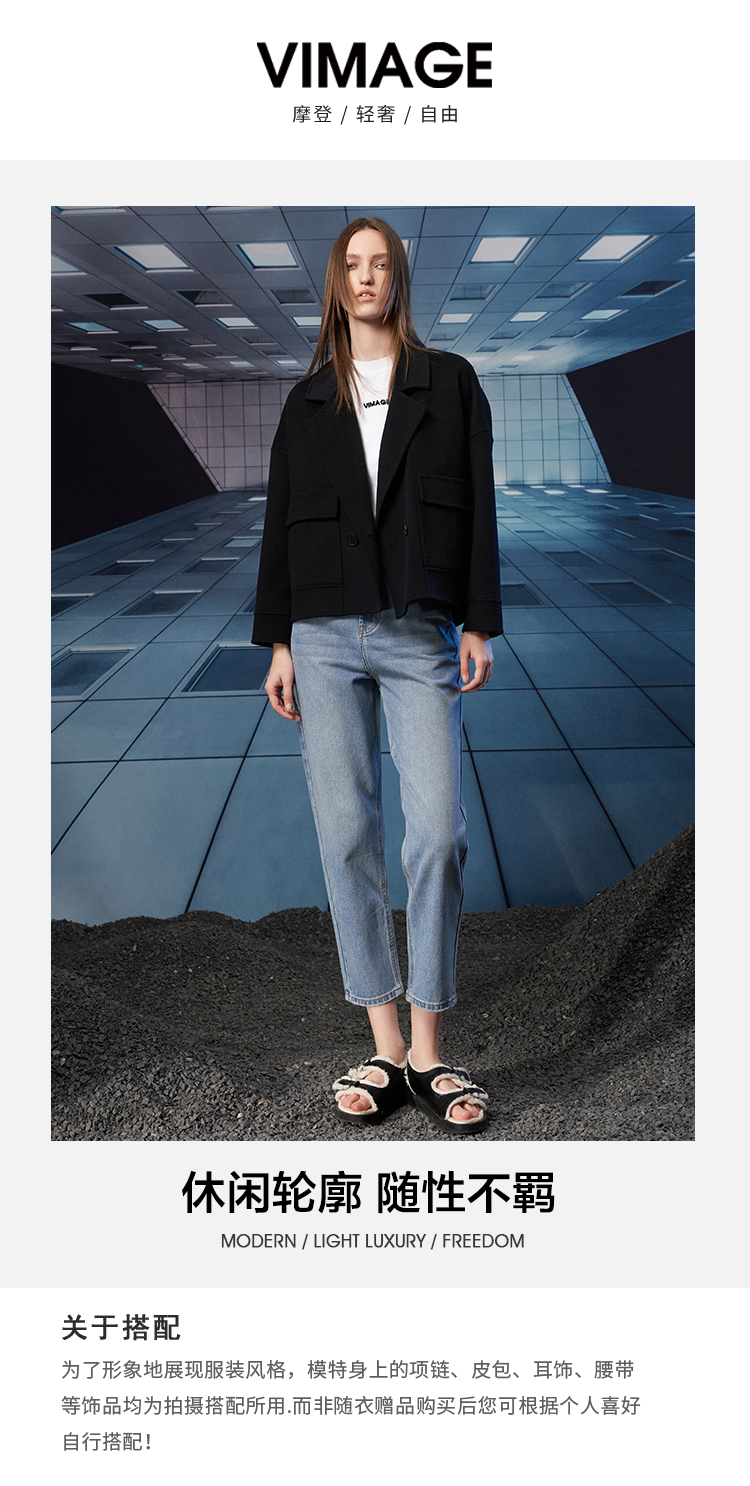 VIMAGE纬漫纪冬季新款翻领洋气显瘦短款外套V1814402