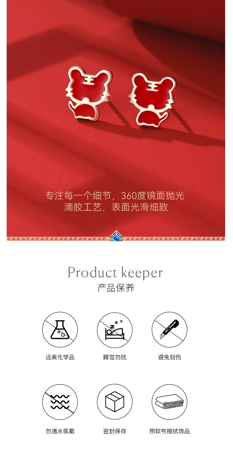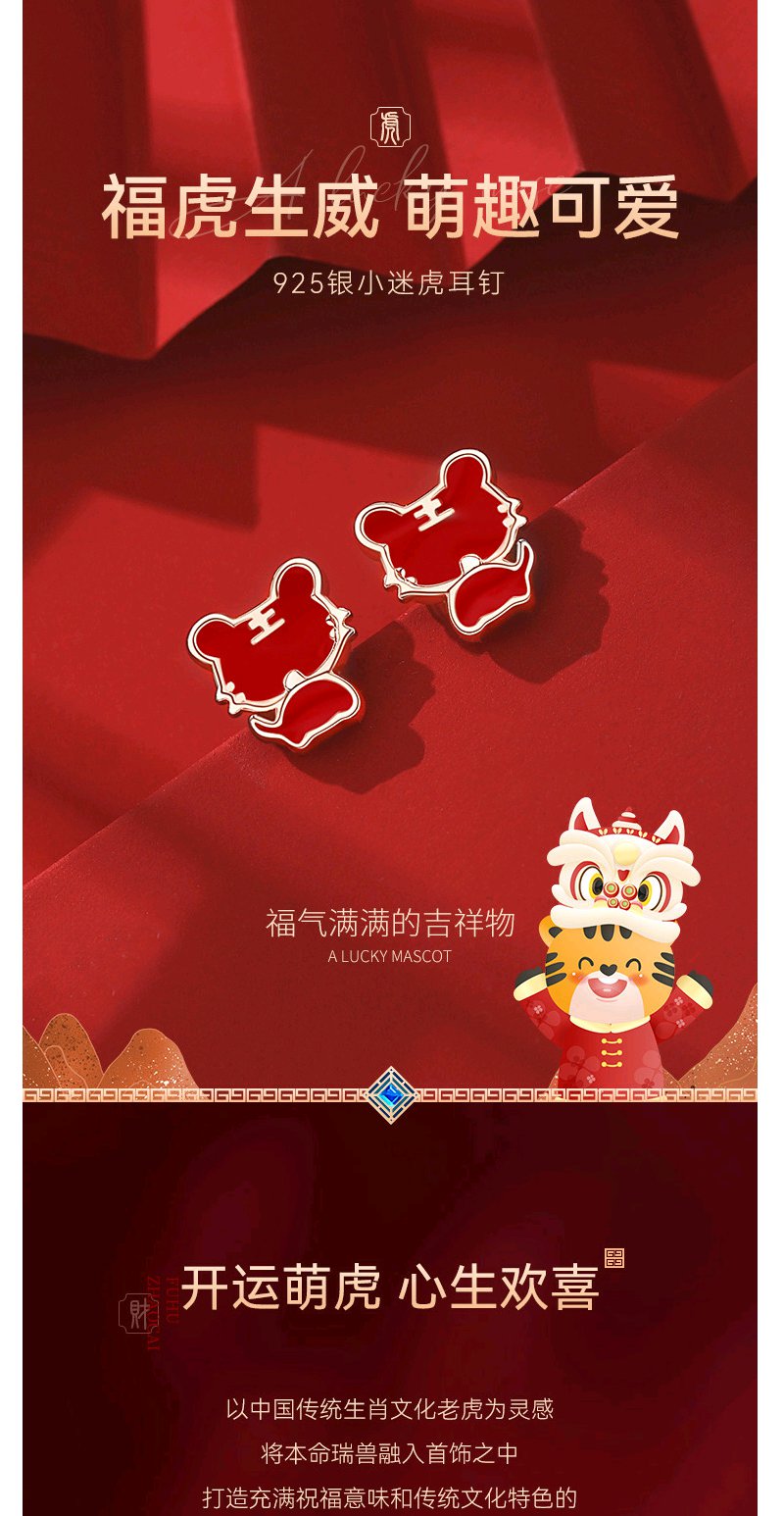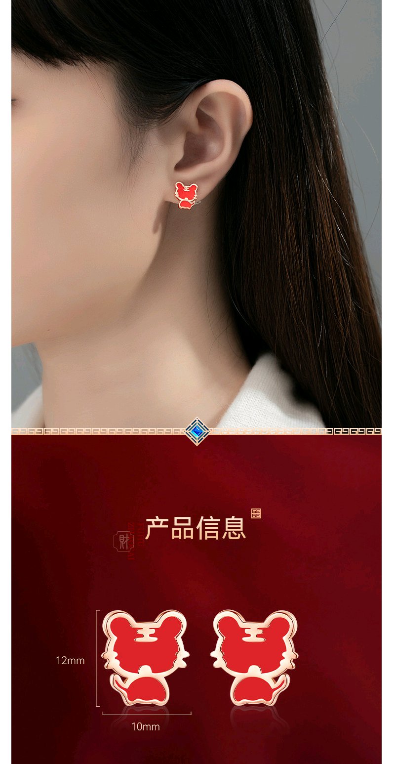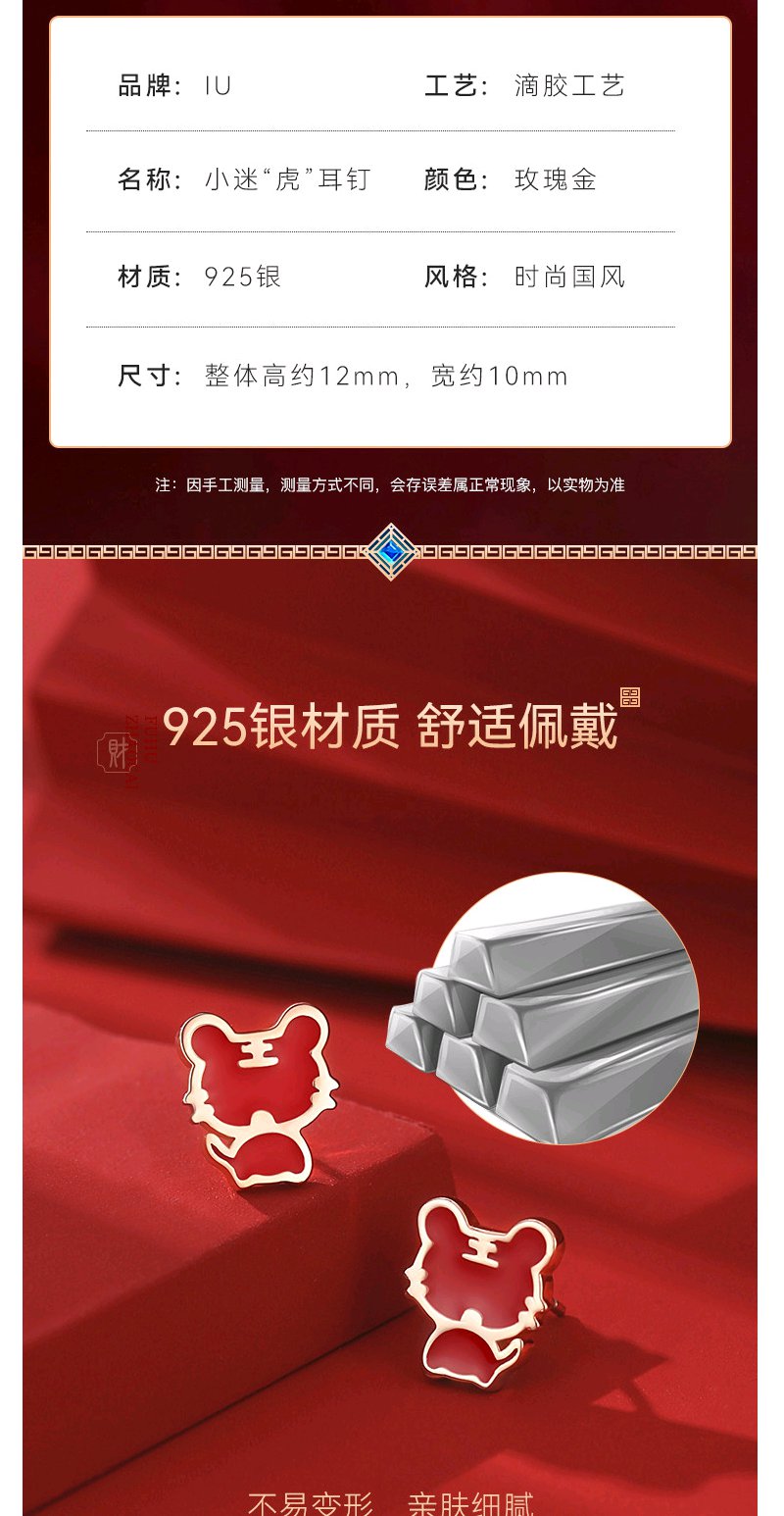 IU925纯银小迷“虎”耳钉送女友闺蜜节日生日礼物