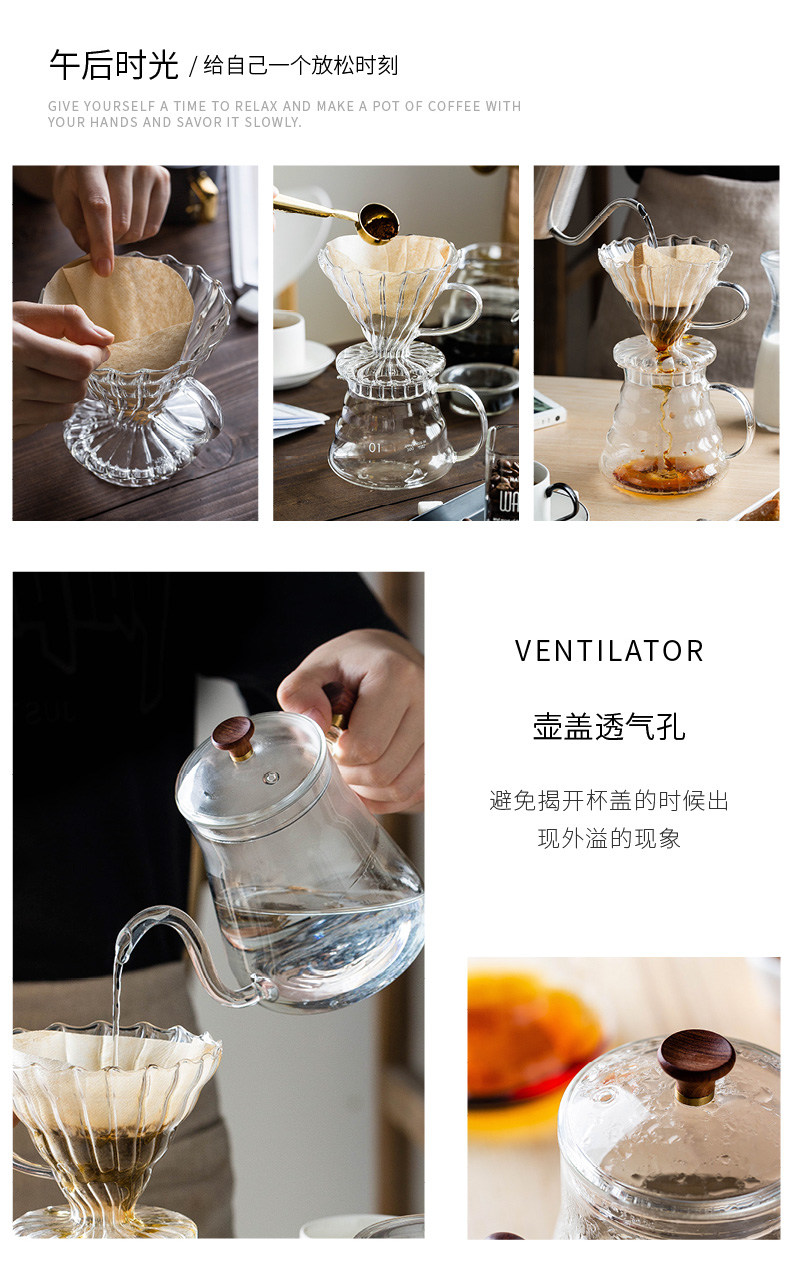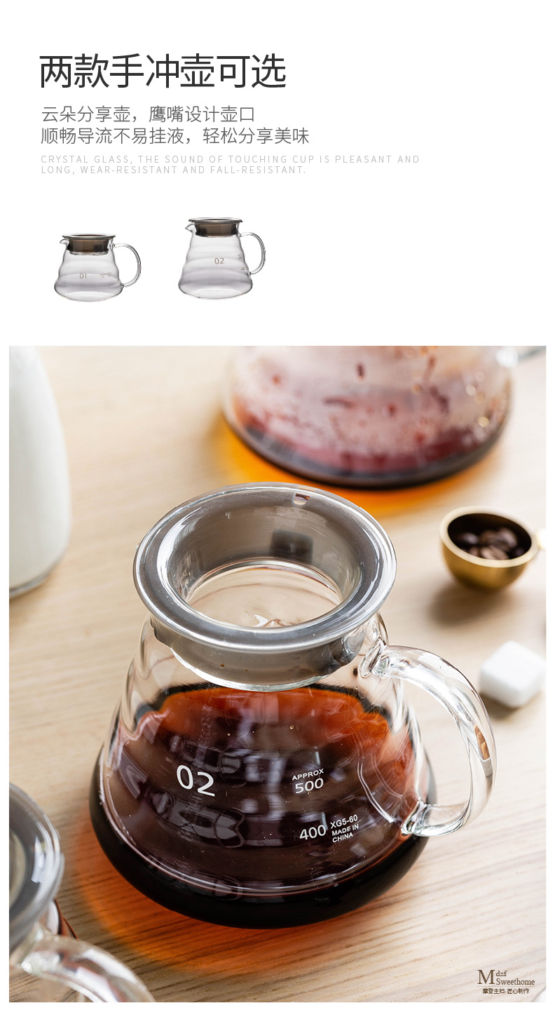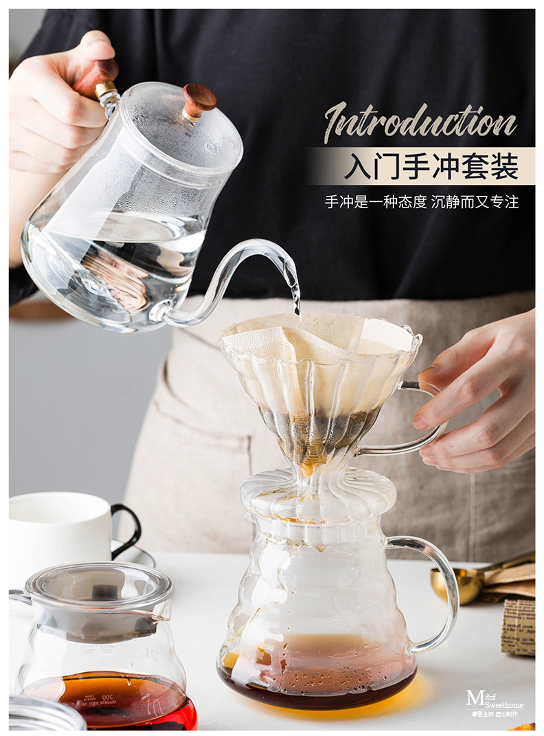 摩登主妇手冲咖啡壶过滤玻璃滤杯滤纸分享壶套装家用便携咖啡器具