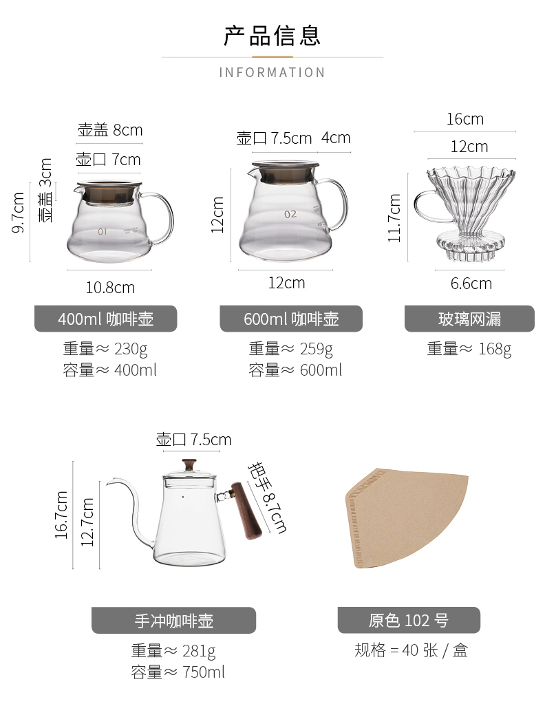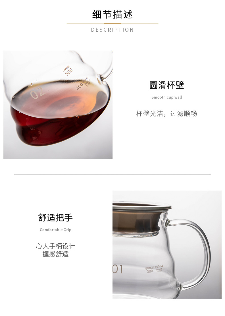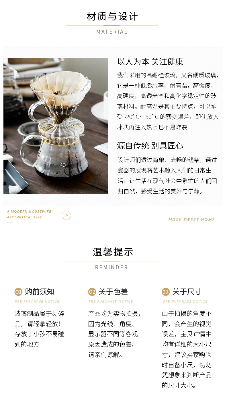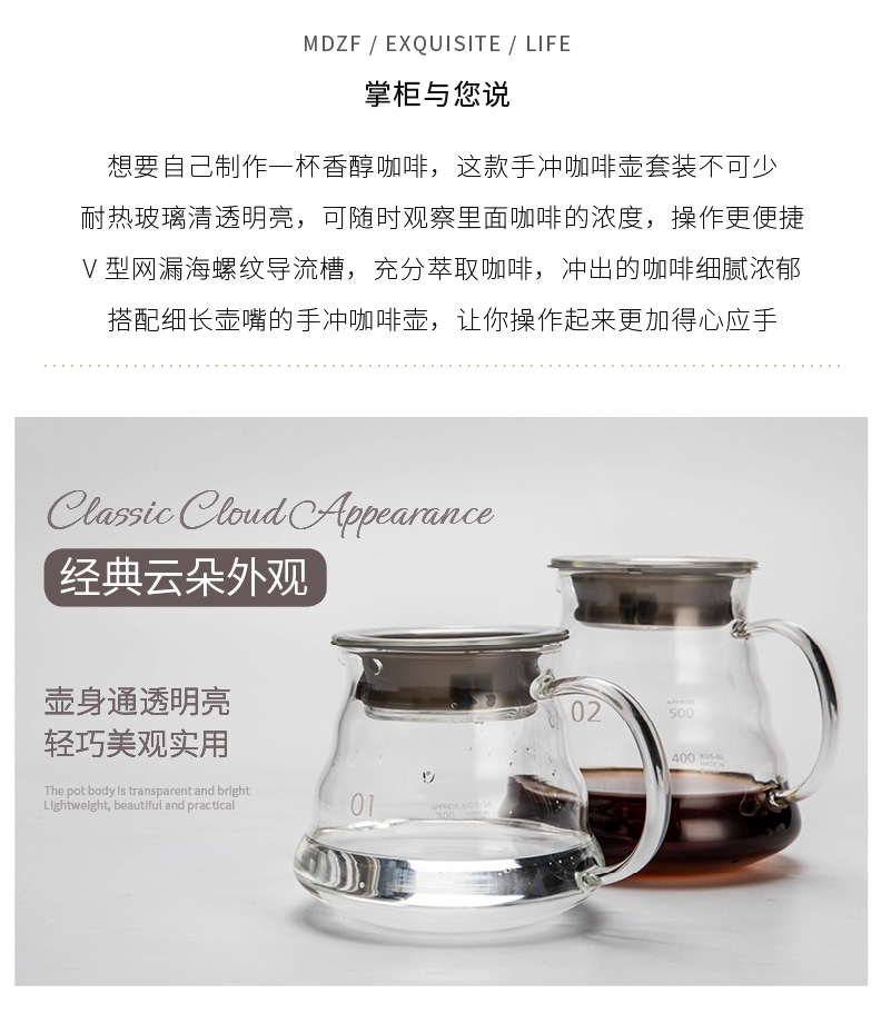 摩登主妇手冲咖啡壶过滤玻璃滤杯滤纸分享壶套装家用便携咖啡器具