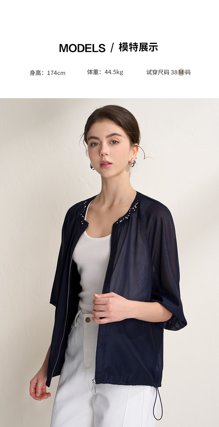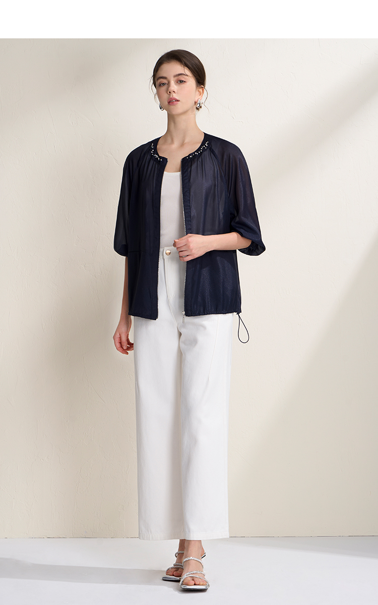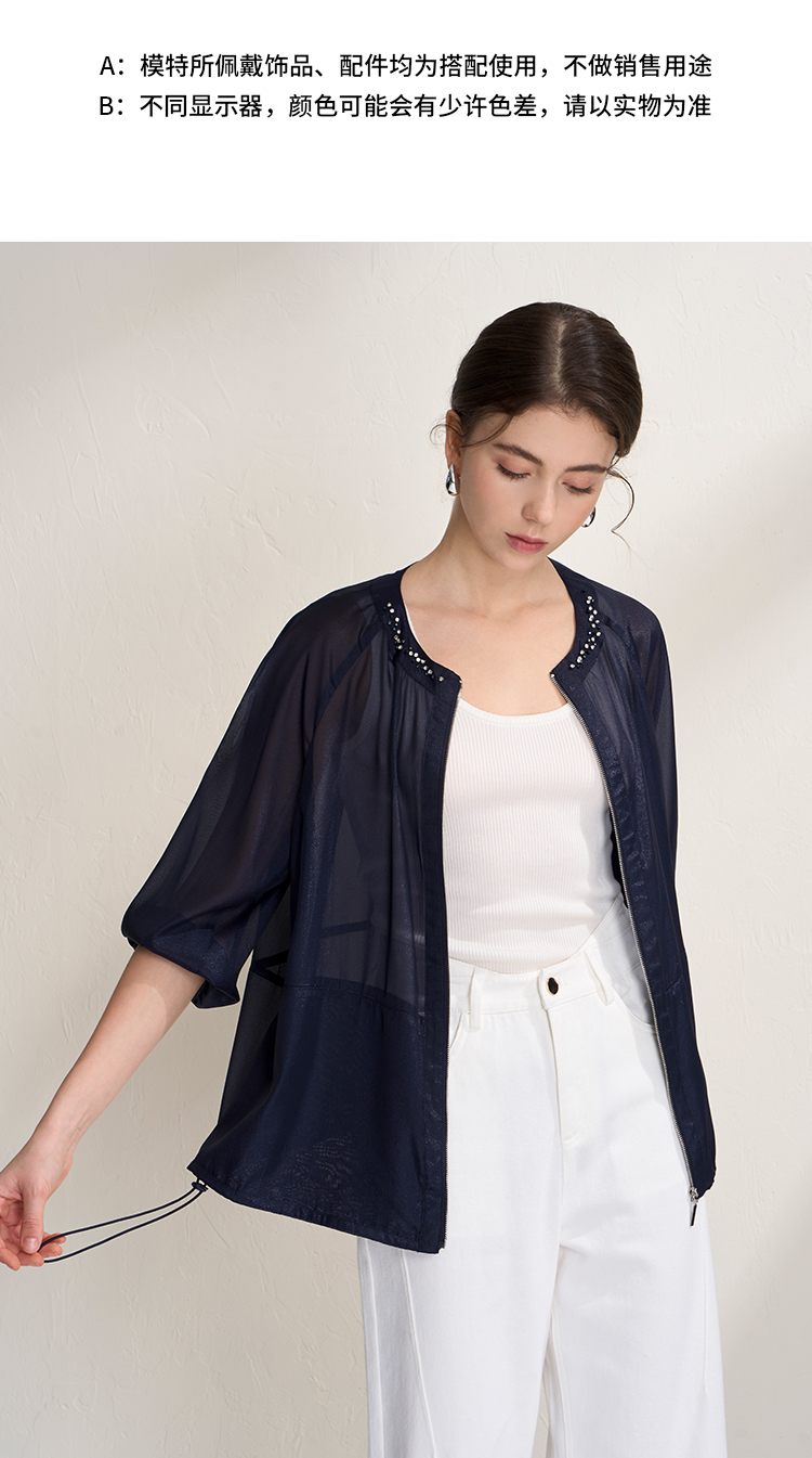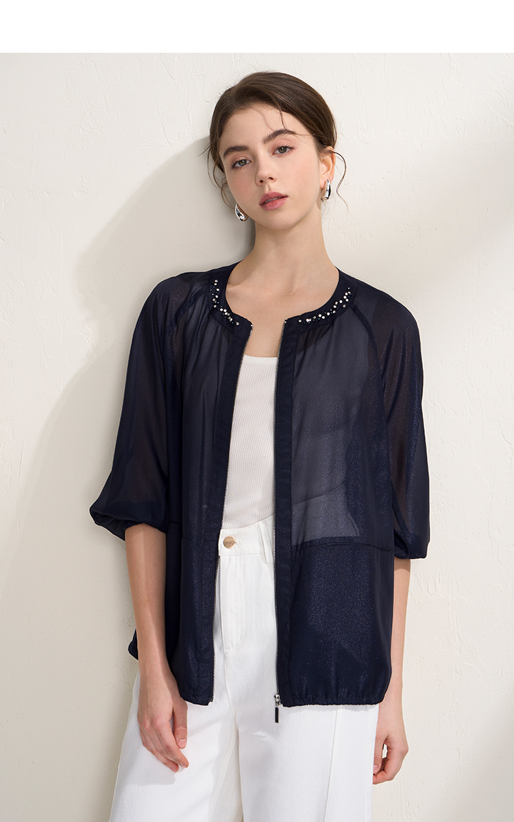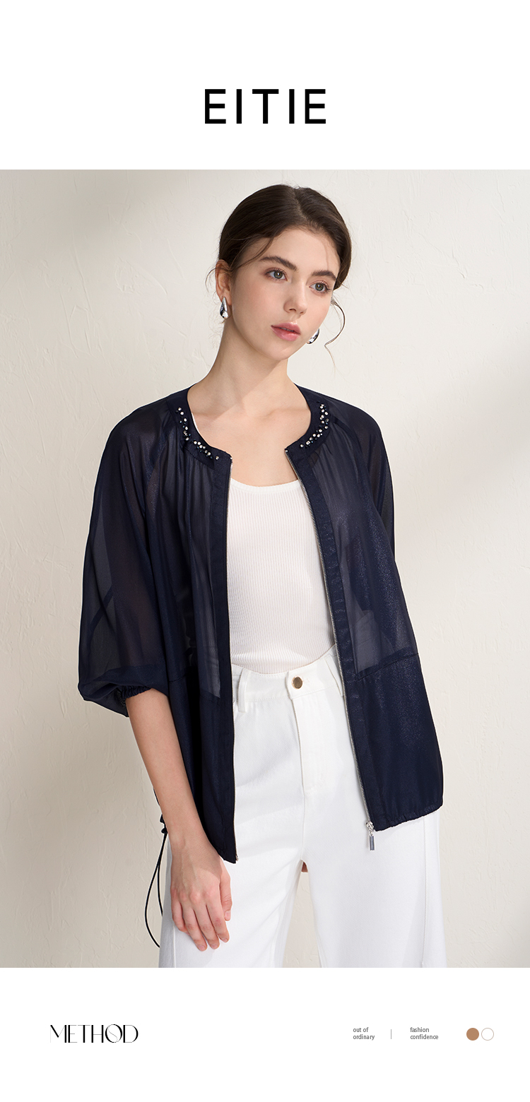 EITIE爱特爱亮丝欧根纱显瘦领口钉珠轻薄显瘦开衫外套2026夏新款B2603204
