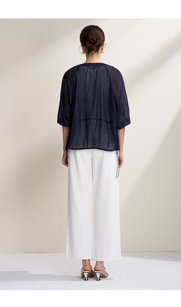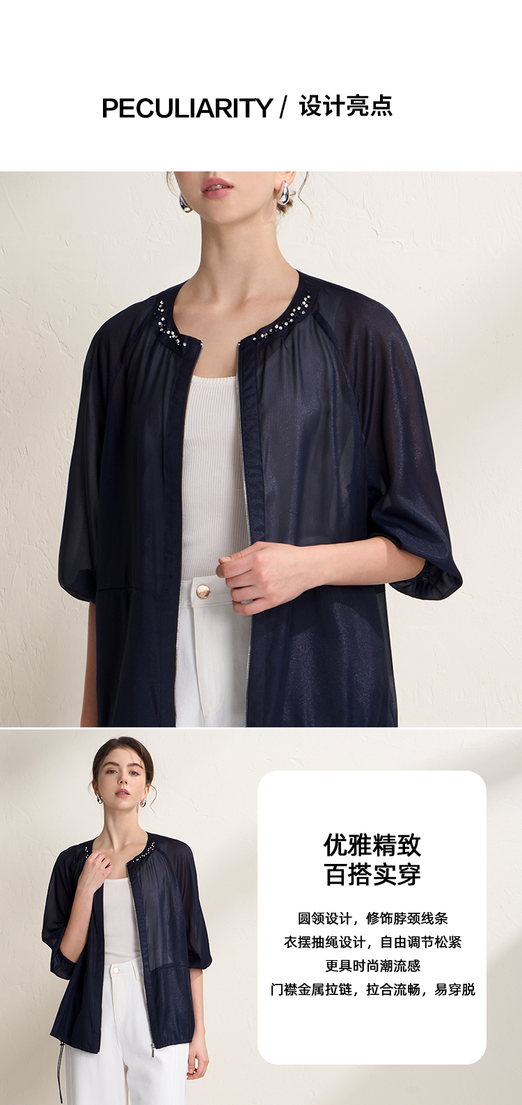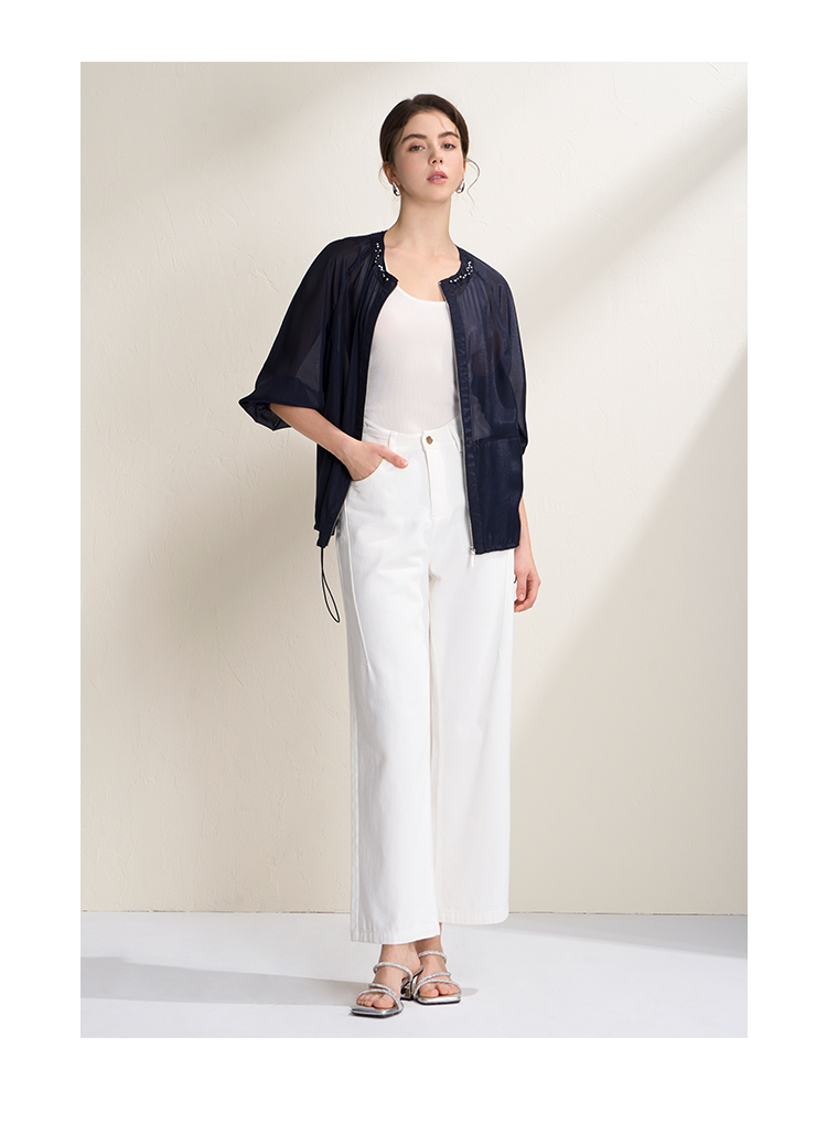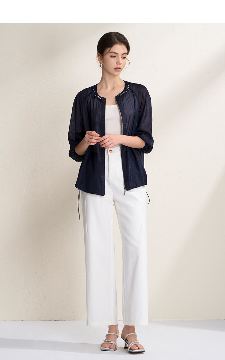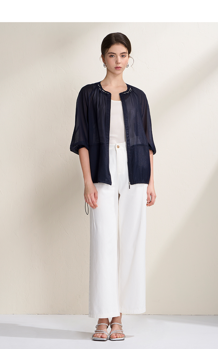 EITIE爱特爱亮丝欧根纱显瘦领口钉珠轻薄显瘦开衫外套2026夏新款B2603204
