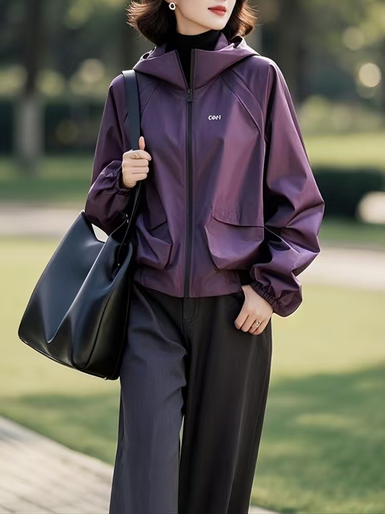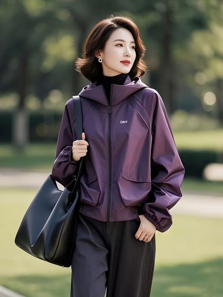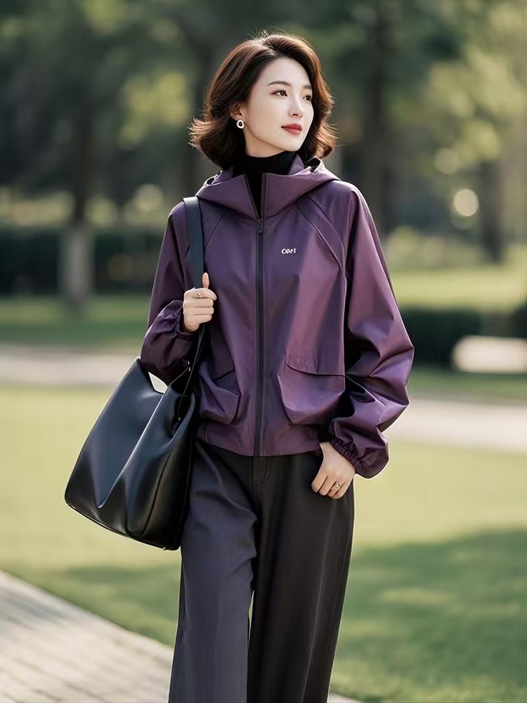 (预售15天)爆款独特漂亮超好看,小个子紫色连帽外套LJX-365