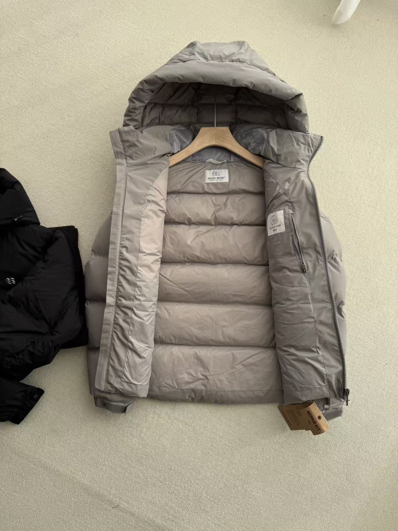 可隆KOLONSPORT25冬季韩版男式防风鹅绒羽绒服,出口韩国订单,细节和品控到手绝对惊艳!出口订单的细节比专柜款更“较真”,防风面料+高蓬松鹅绒,保暖性和颜值都在线,到手的质感能让你感叹“这钱花得值”。外层采用防风防水科技面料,能抵御小雨和寒风,内里有透气衬里,避免闷热感,兼顾户外实用性与日常舒适性。填充80%鹅绒,蓬松度高且保暖性强,同时做了轻量化处理,上身无厚重感,适合零下气温穿着。采用“都市户外”风格的修身版型,不臃肿,胸前有品牌低调小标,灰、黑基础色适配通勤、休闲等多种场景。连帽带抽绳可调节,拉链闭合+防风门襟,袖口和下摆为罗纹收紧设计,两侧有大容量插手口袋,实用性强。