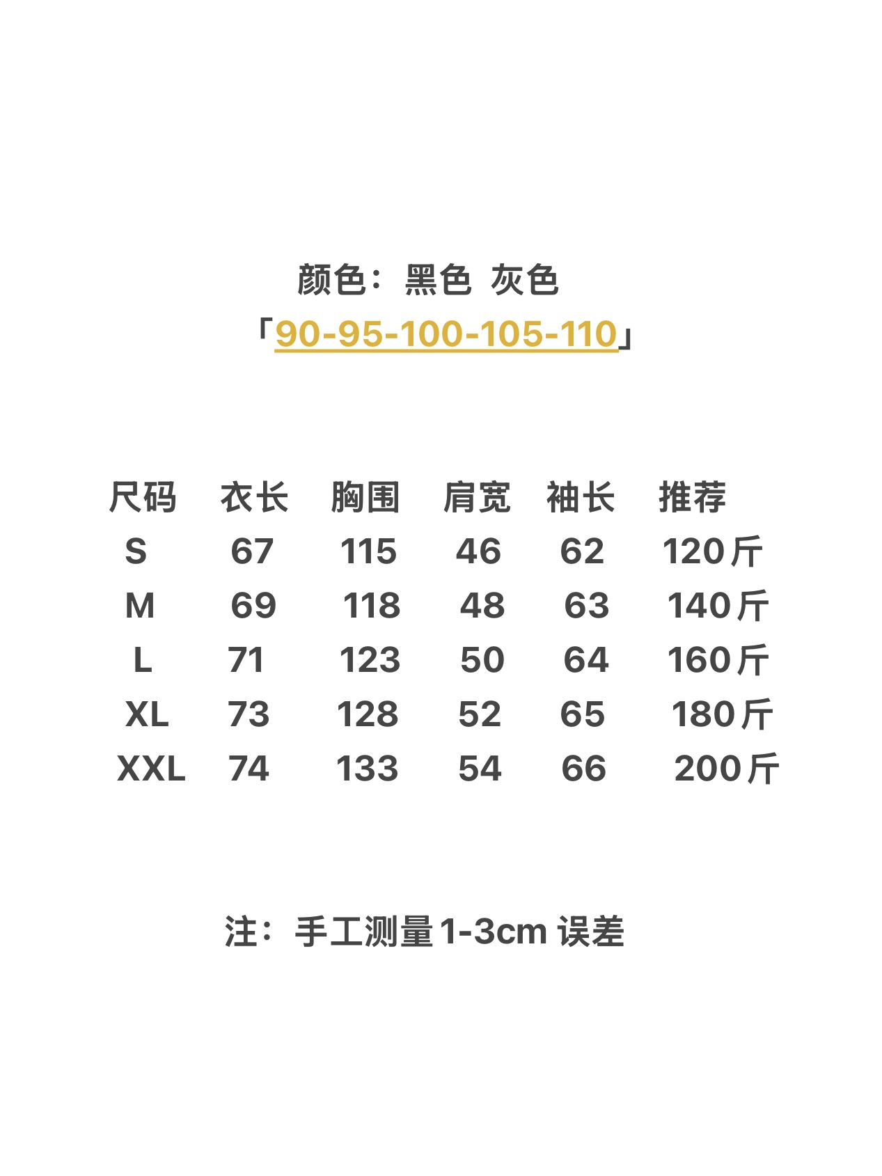 尺码:90(S)-110(2XL)