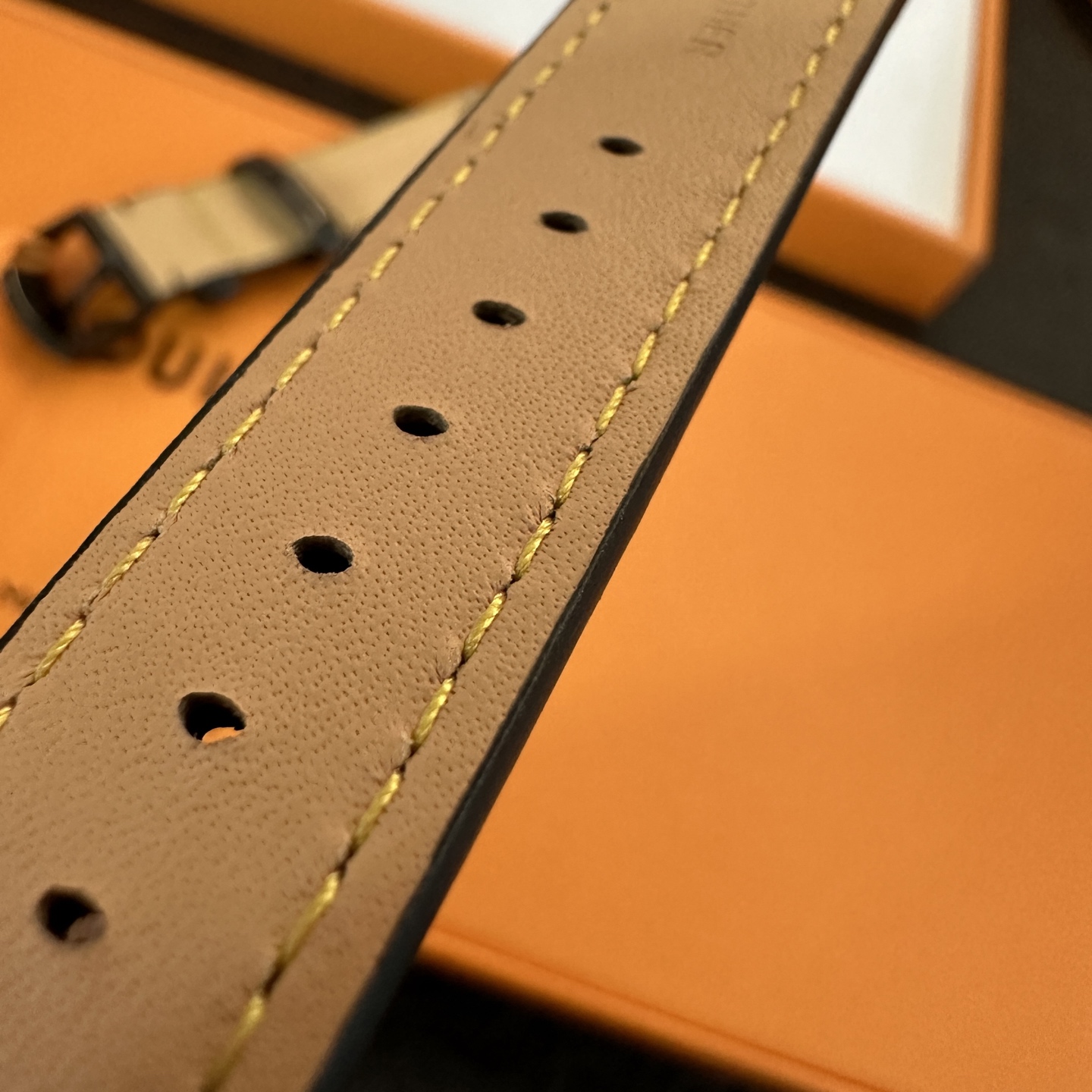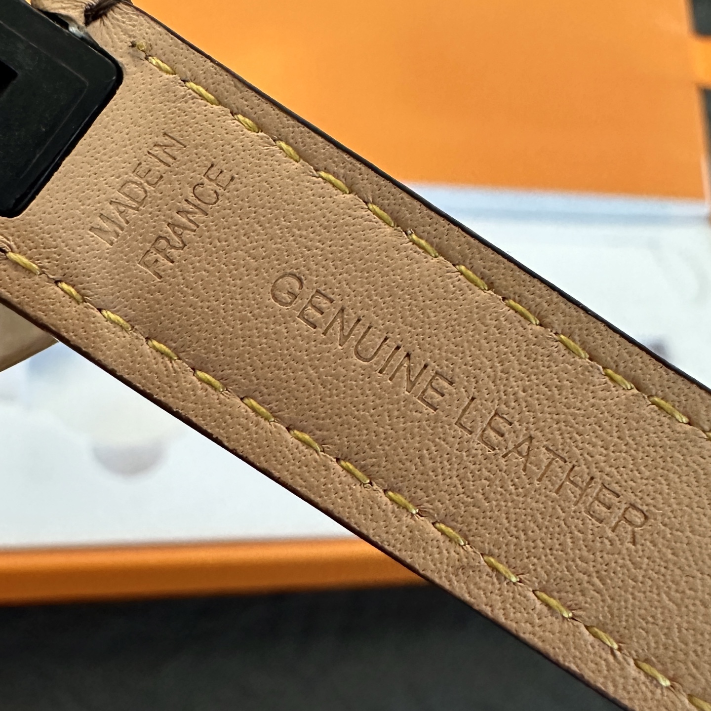 牛皮老花皮带,老花材质柔软且颗粒感足,背面是本染牛皮材质,每个细节都呈现满分的质感。