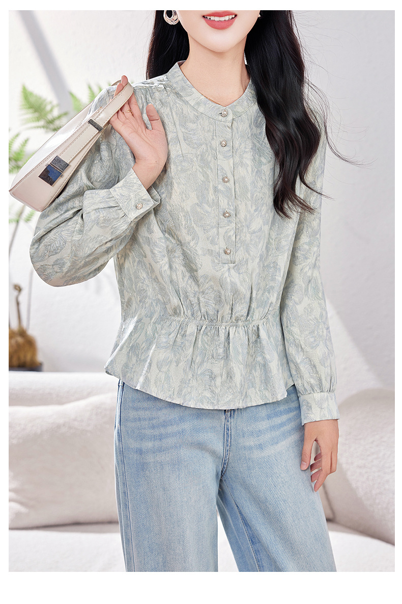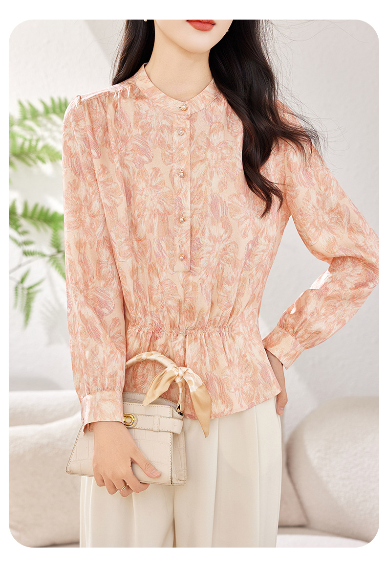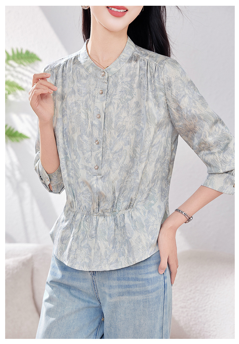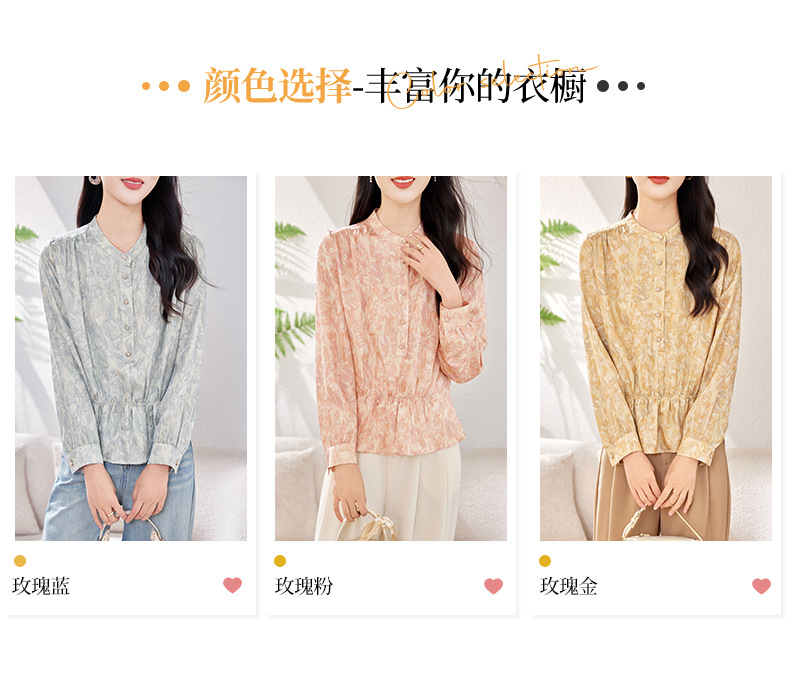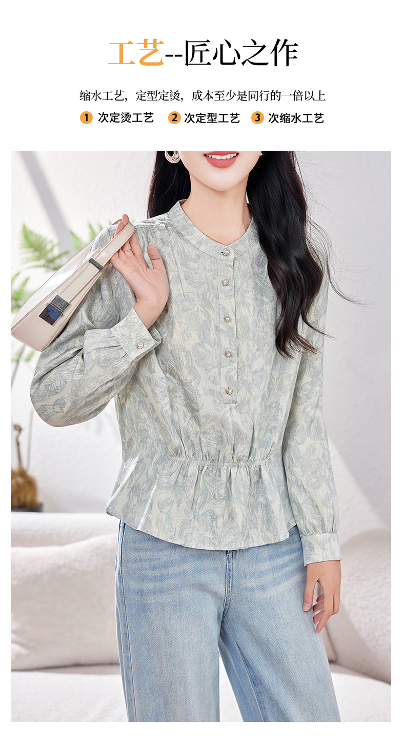 丁摩 金丝提花真丝衬衫收腰气质桑蚕丝衬衣0341 商品图4