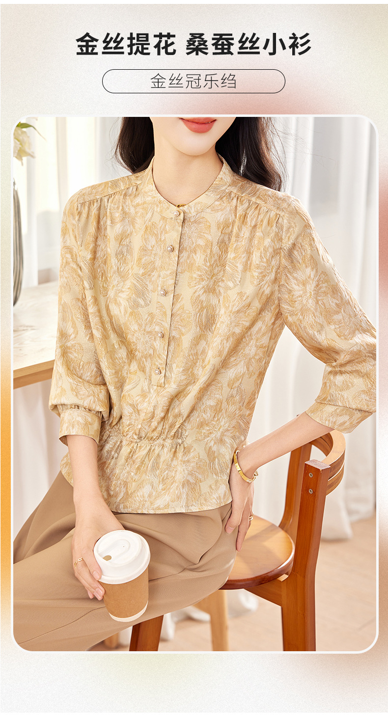 丁摩 金丝提花真丝衬衫收腰气质桑蚕丝衬衣0341 商品图0