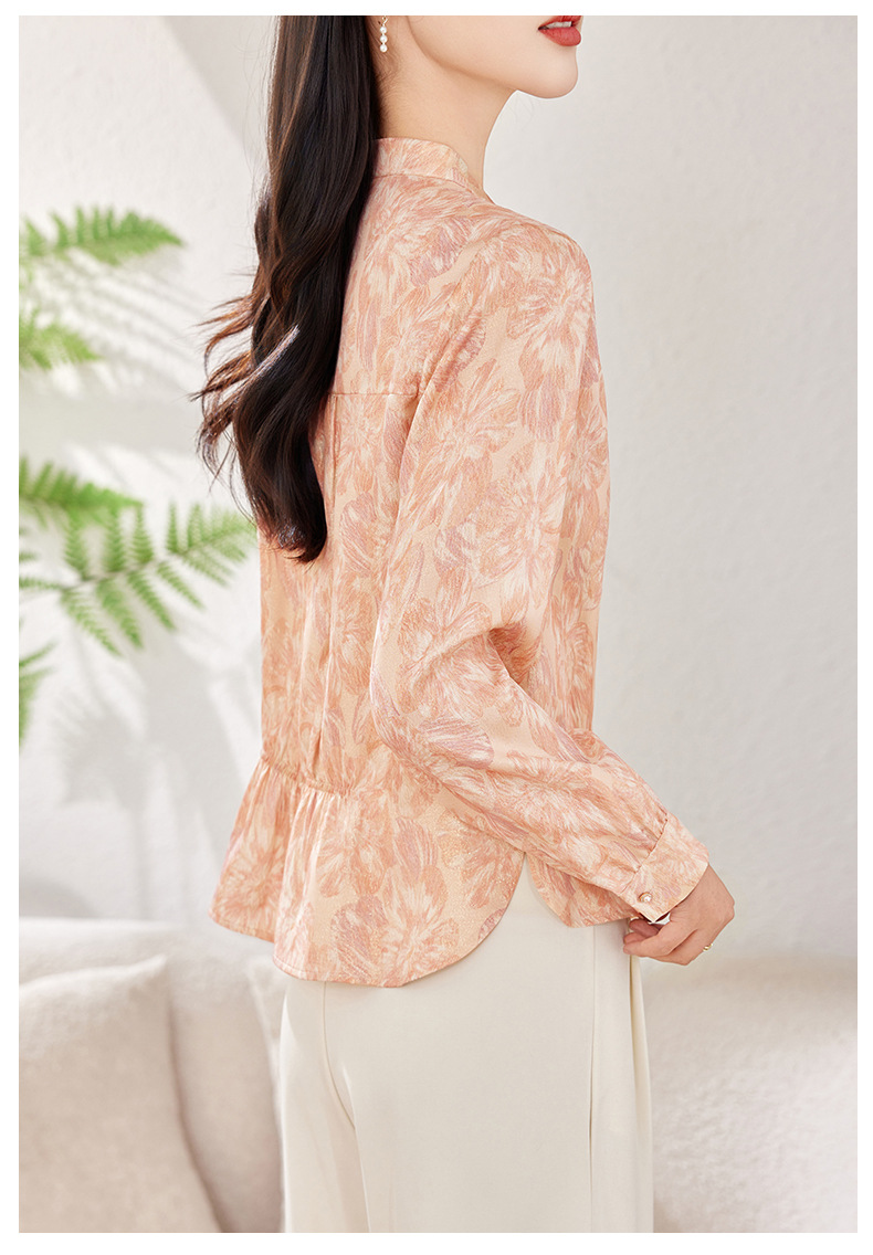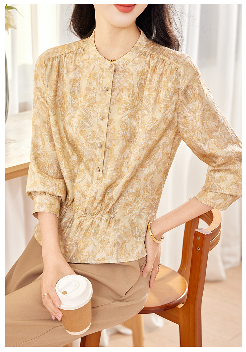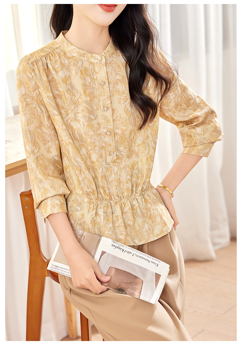 丁摩 金丝提花真丝衬衫收腰气质桑蚕丝衬衣0341 商品图3
