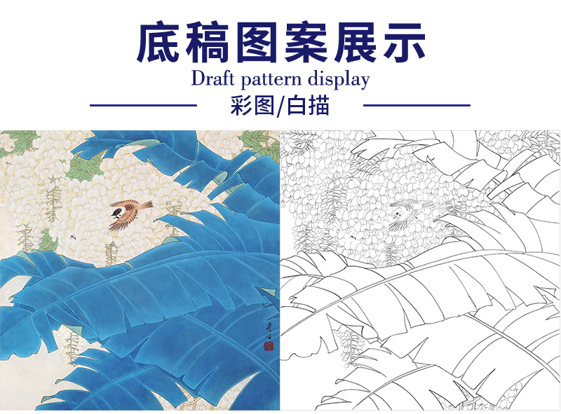 周彦生花鸟工笔画白描底稿《花鸟》临摹勾线高清打印稿A659