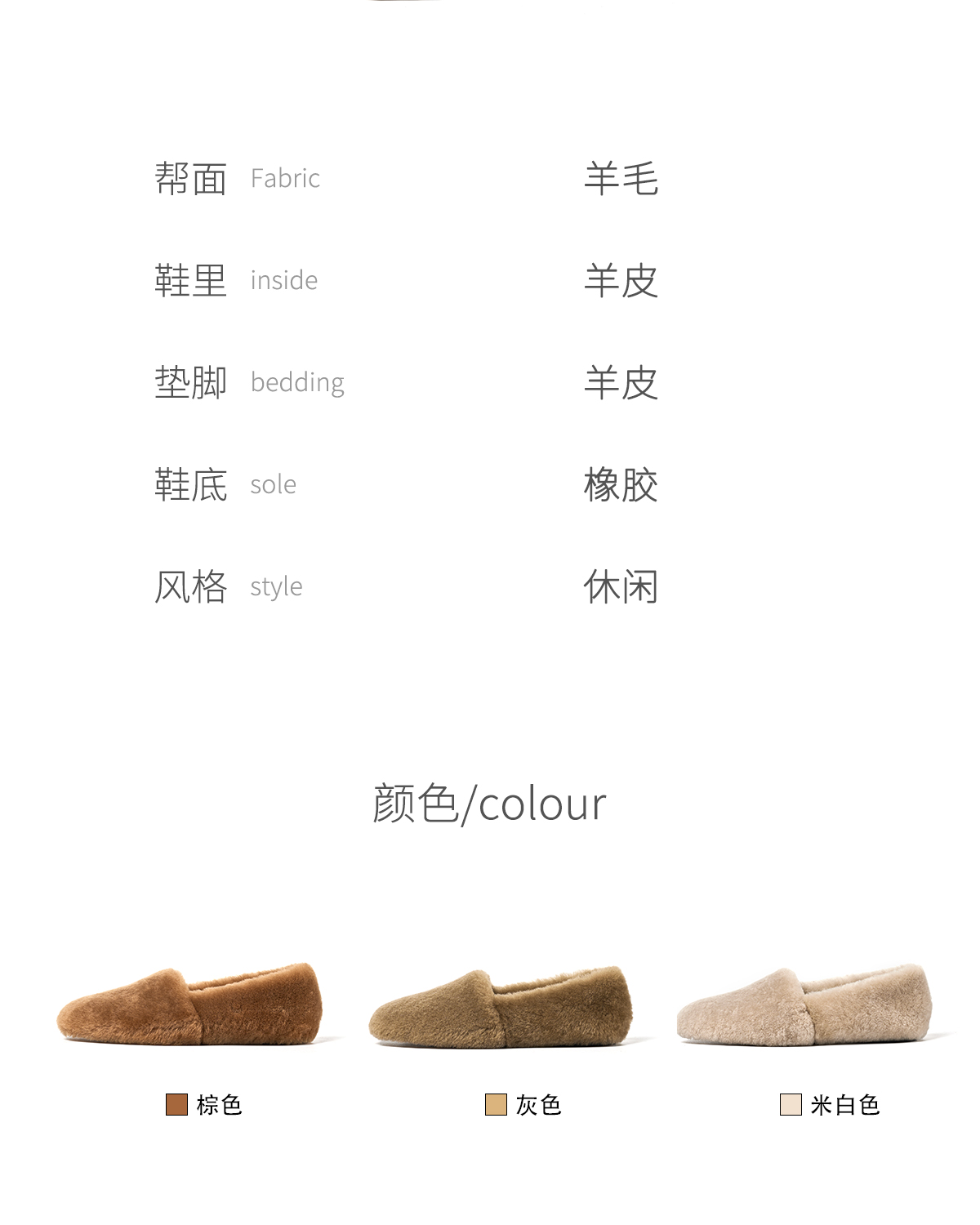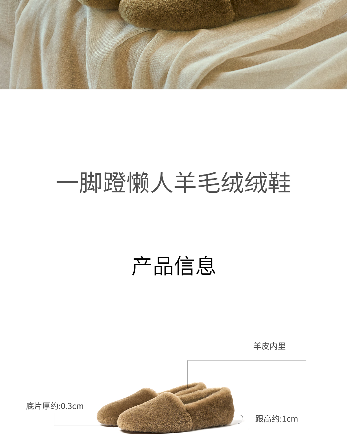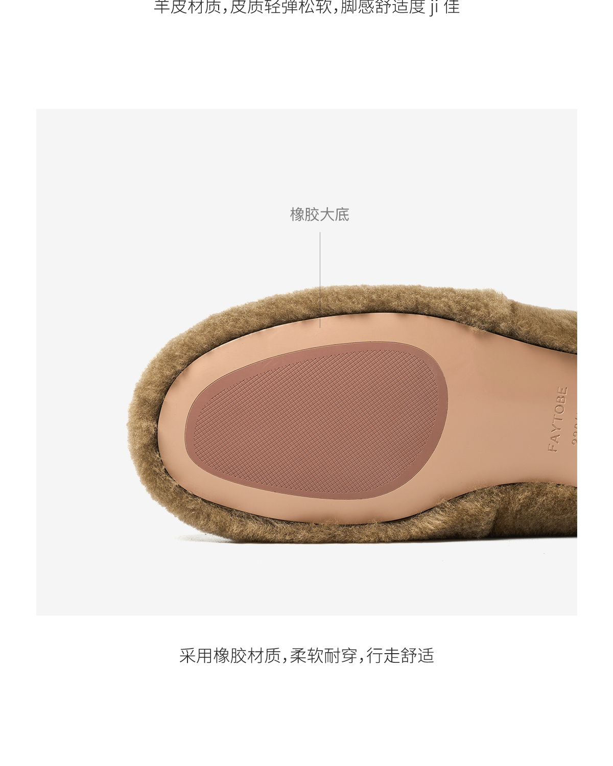 faytobe羊毛绒绒鞋秋冬时尚舒适纯色平底豆豆鞋懒人一脚蹬单鞋