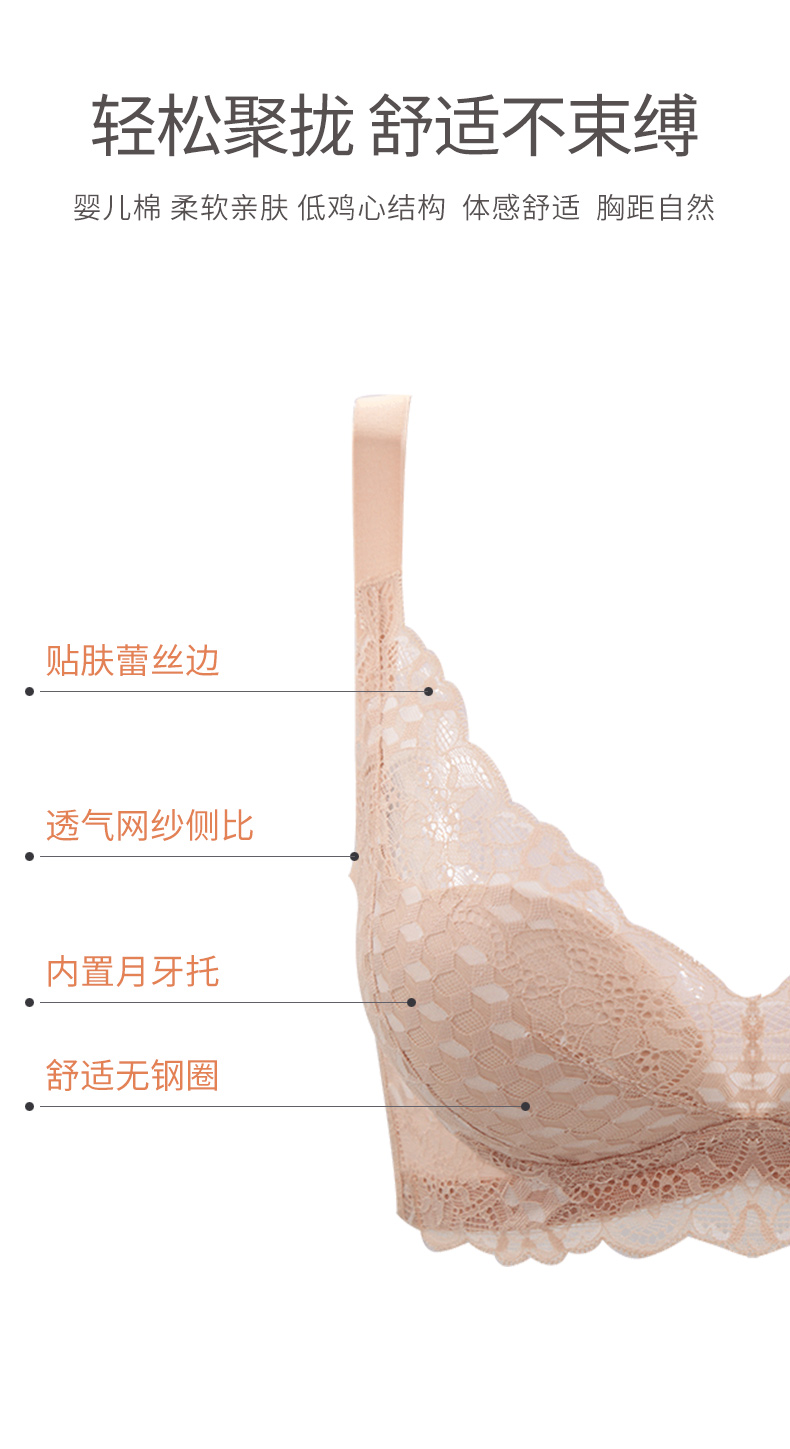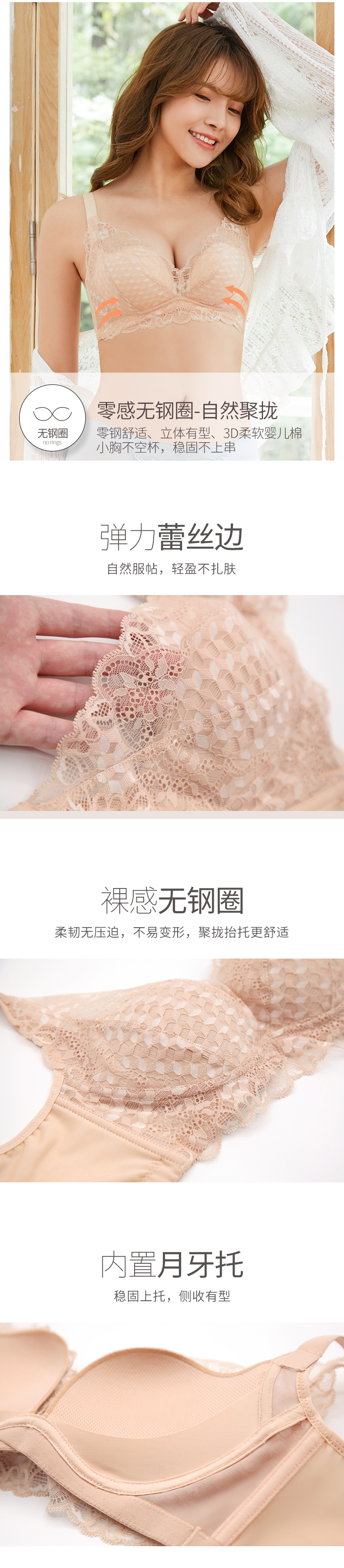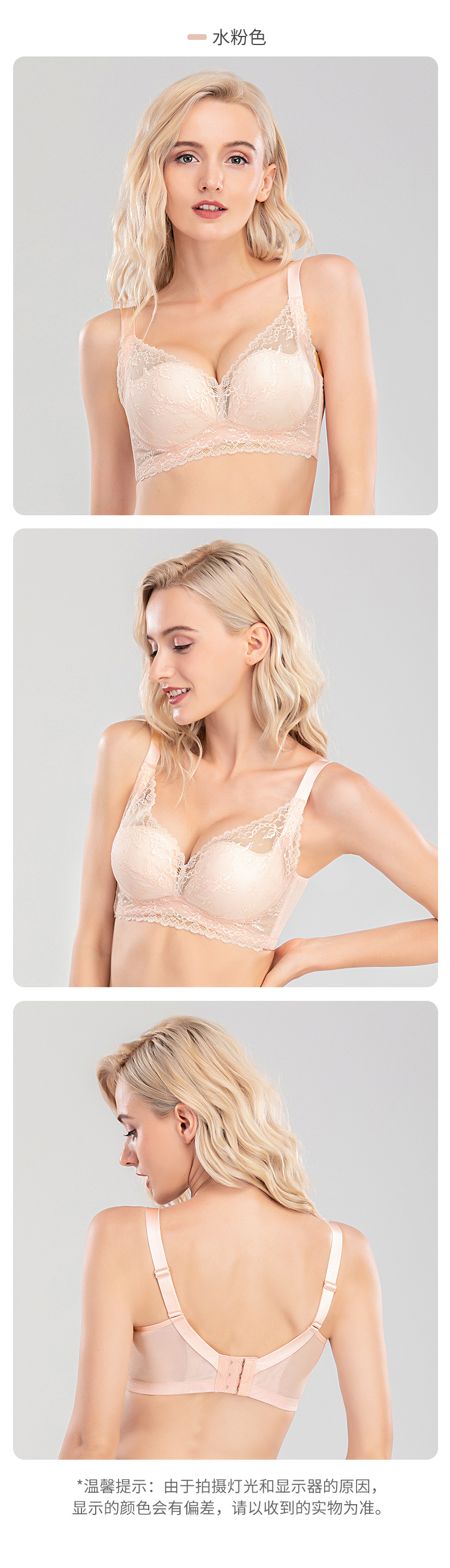 贝佳人新品花纹蕾丝调整型文胸无钢圈零束缚美背内衣透气聚拢BW952022
