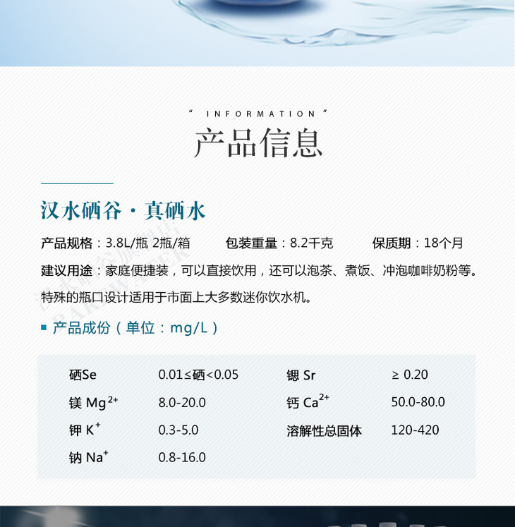 汉水硒谷·真硒水3.8L×8桶 (四箱装)