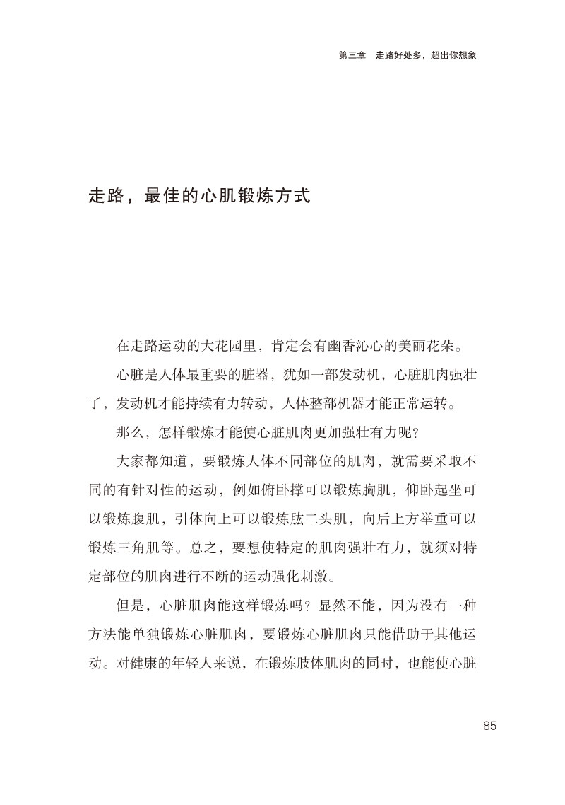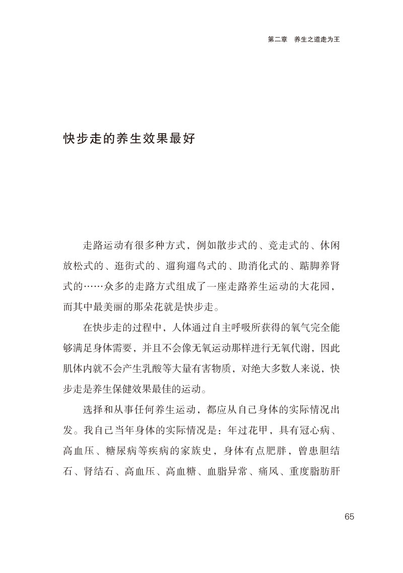 我一直提倡科学走路,因为它既可以控制体重、保护心脏、延缓衰老,还可以疏通脉络、改善血液循环、恢复精力,好处不胜枚举。而这本书所讲内容和我的观点十分契合,一位普通的病患可以写出这种高水平的书,让人十分敬佩!