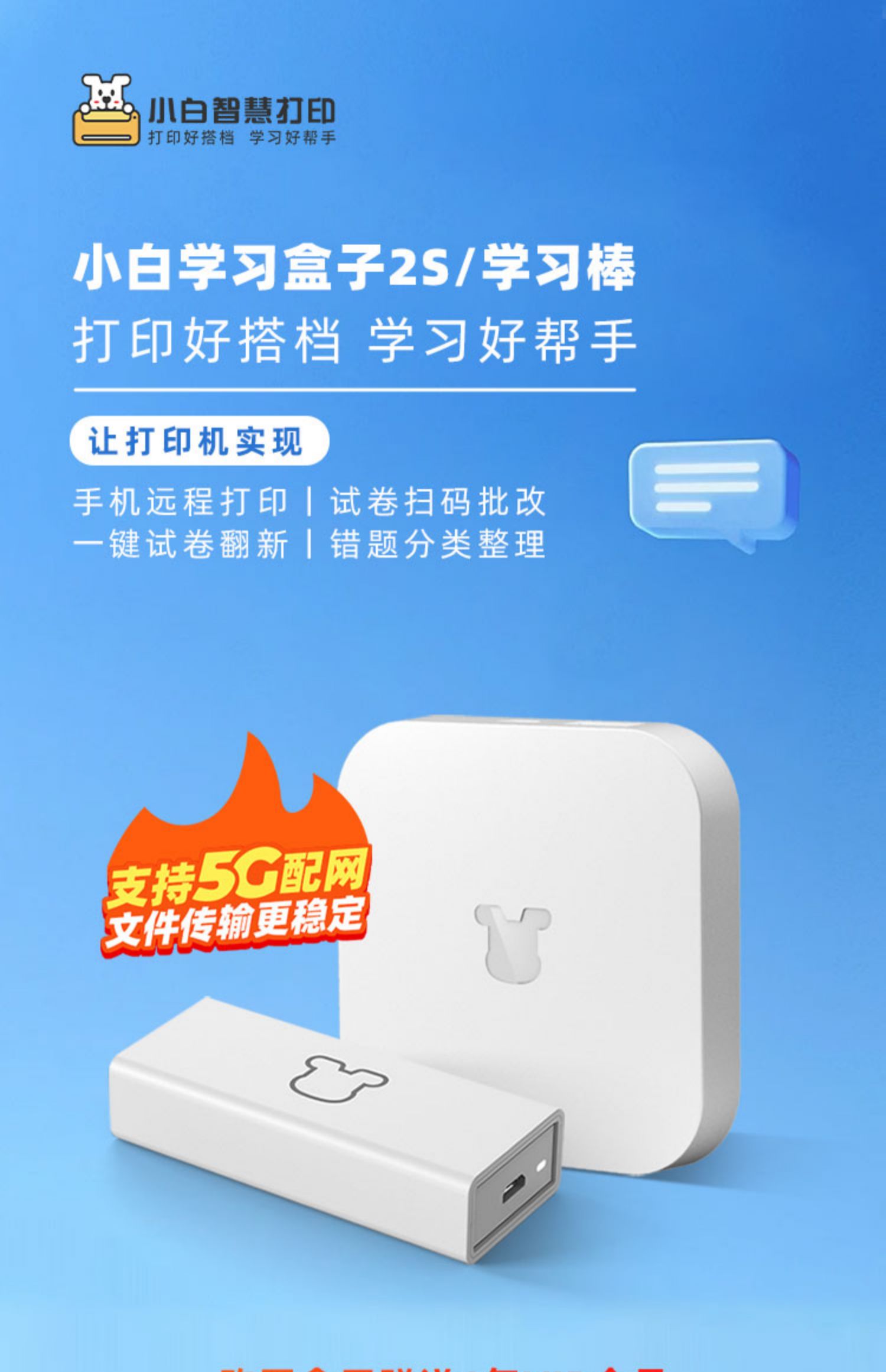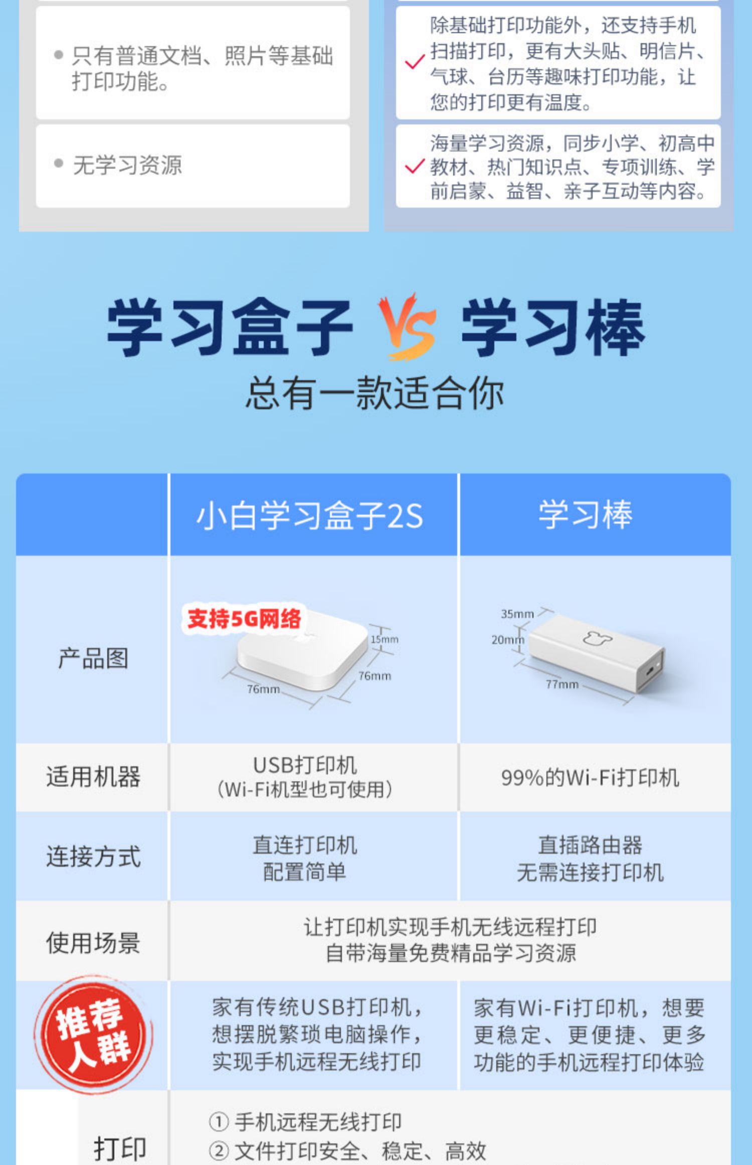 小白智慧学习棒盒子家用打印机共享服务器2S升级5G版远程手机usb无线网络改装wifi接收器惠普爱普生打印云盒