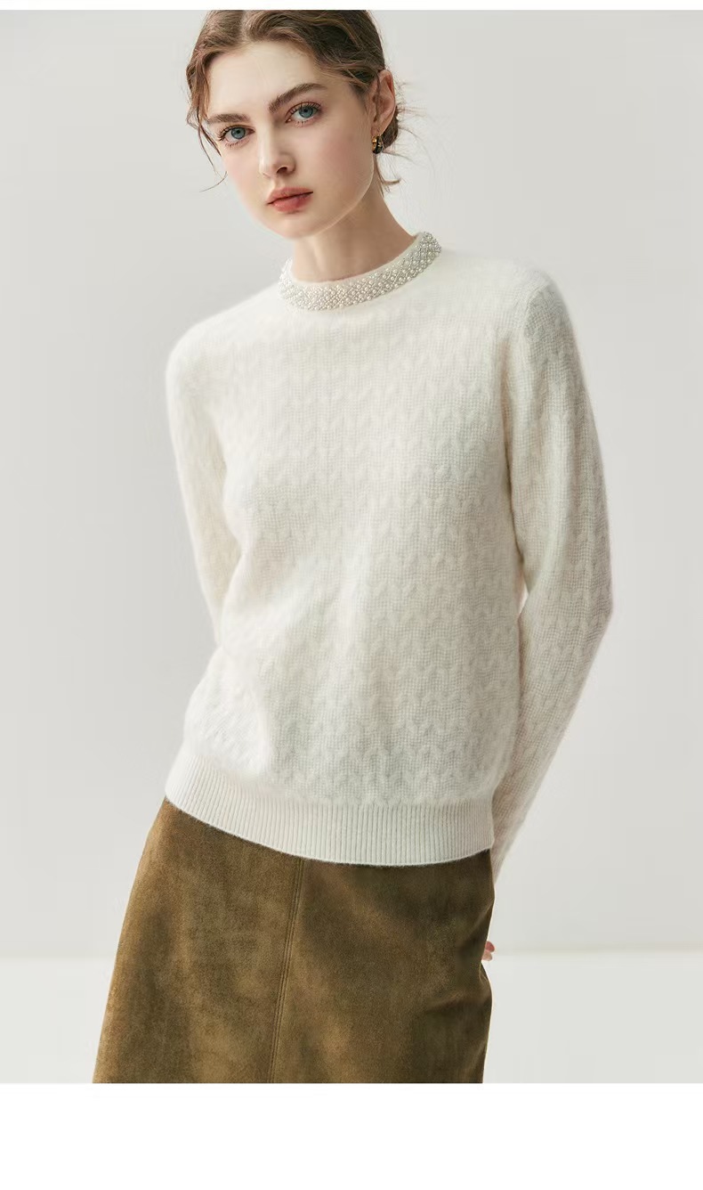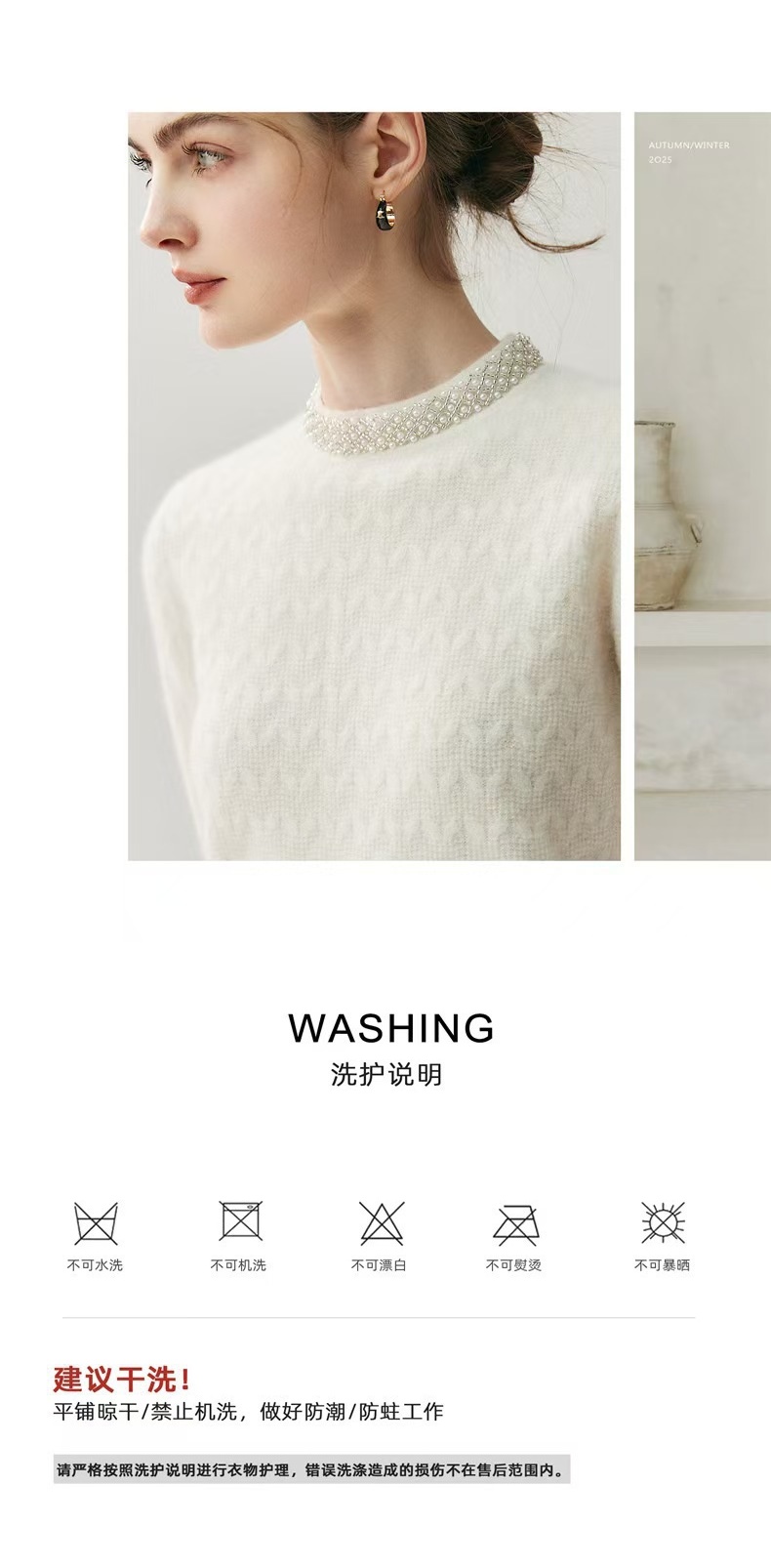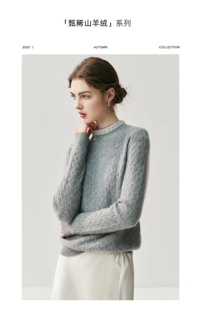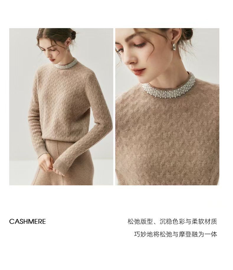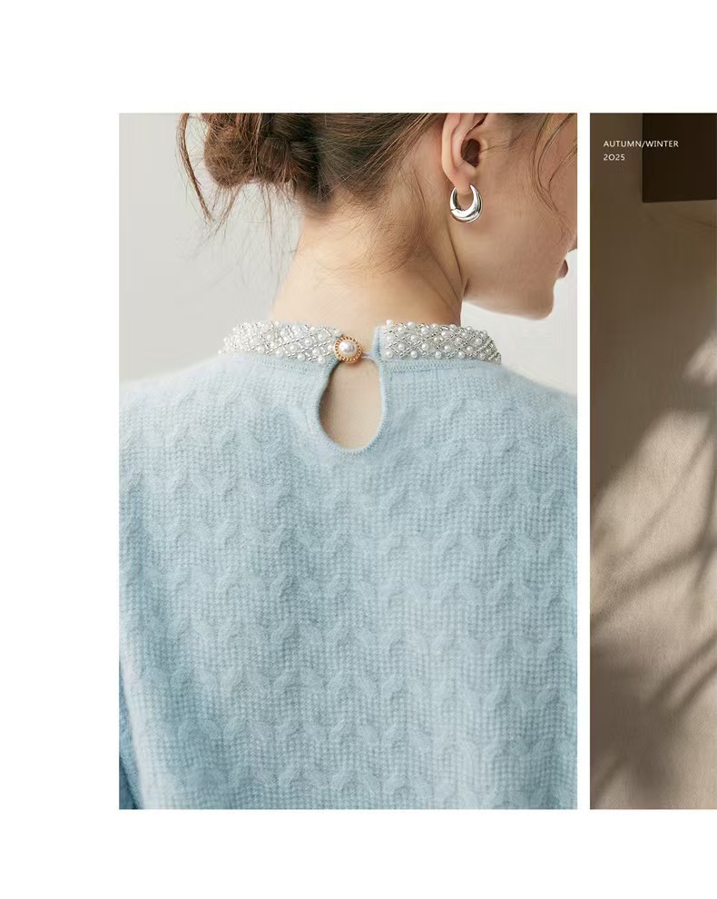 「高货qj」全新升级【铂金会员477/天猫639/差价162】(02333)洛诗琳气质镶钻珍珠领羊绒衫2025秋冬圆领减龄提花毛衣