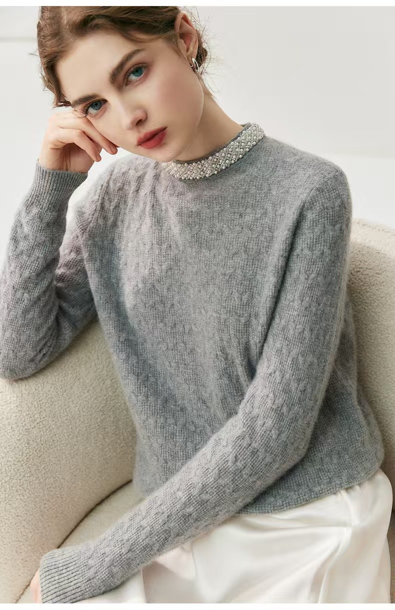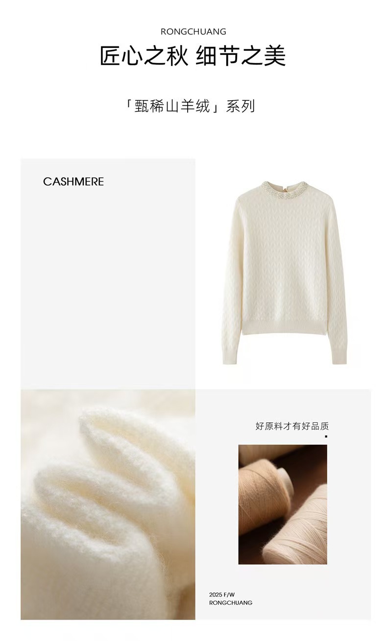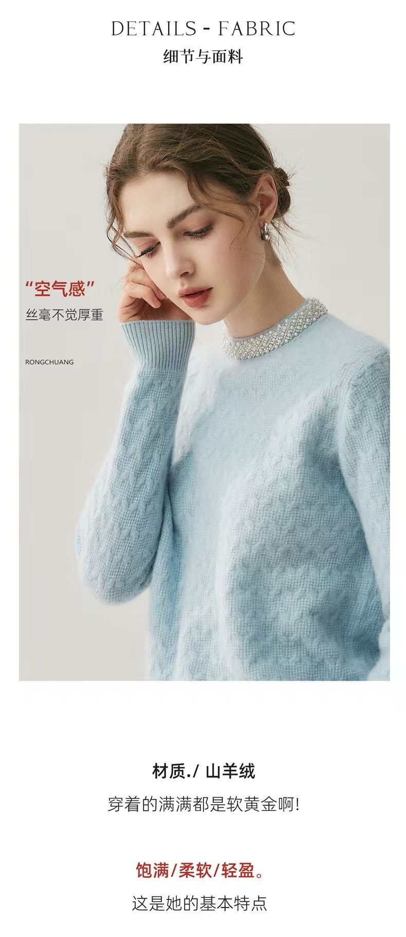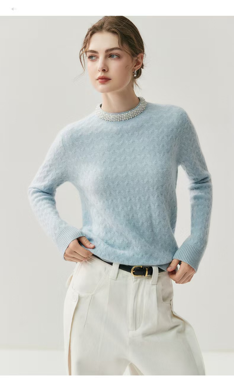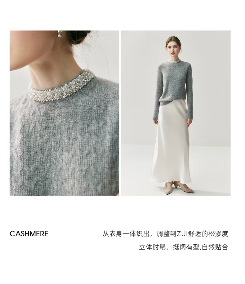 「高货qj」全新升级【铂金会员477/天猫639/差价162】(02333)洛诗琳气质镶钻珍珠领羊绒衫2025秋冬圆领减龄提花毛衣