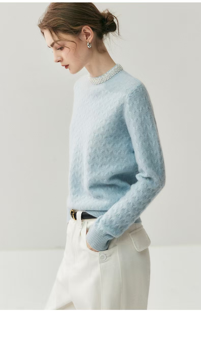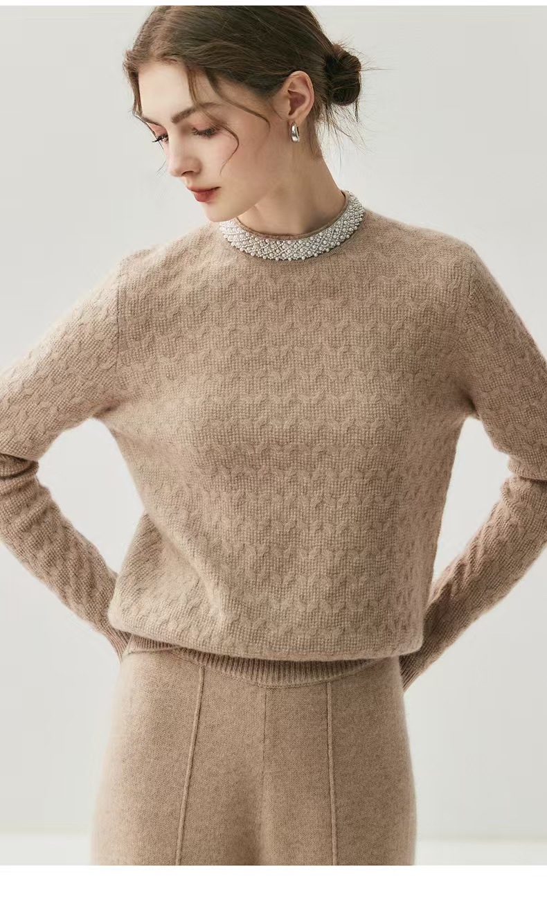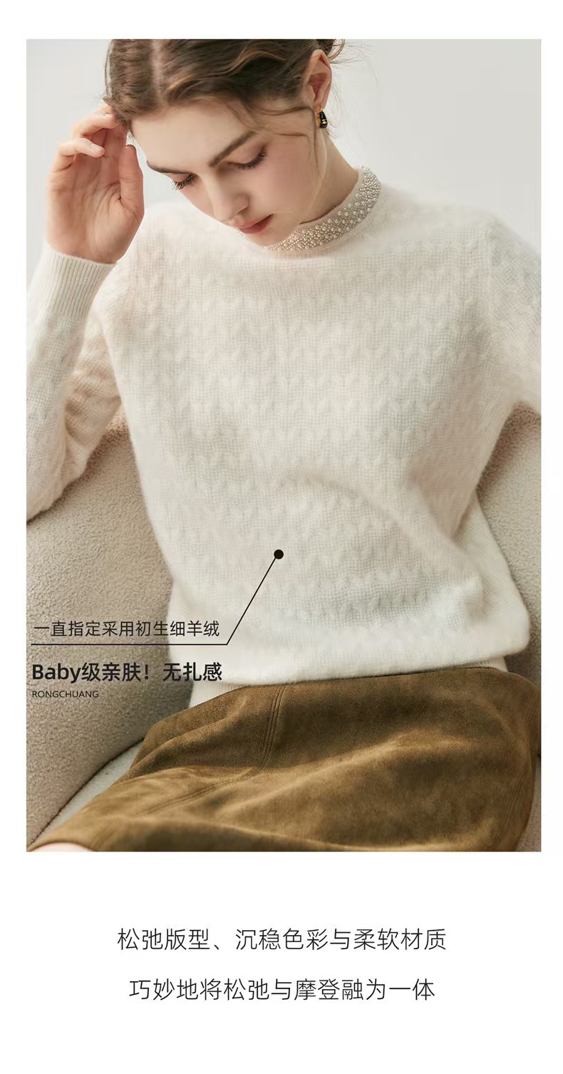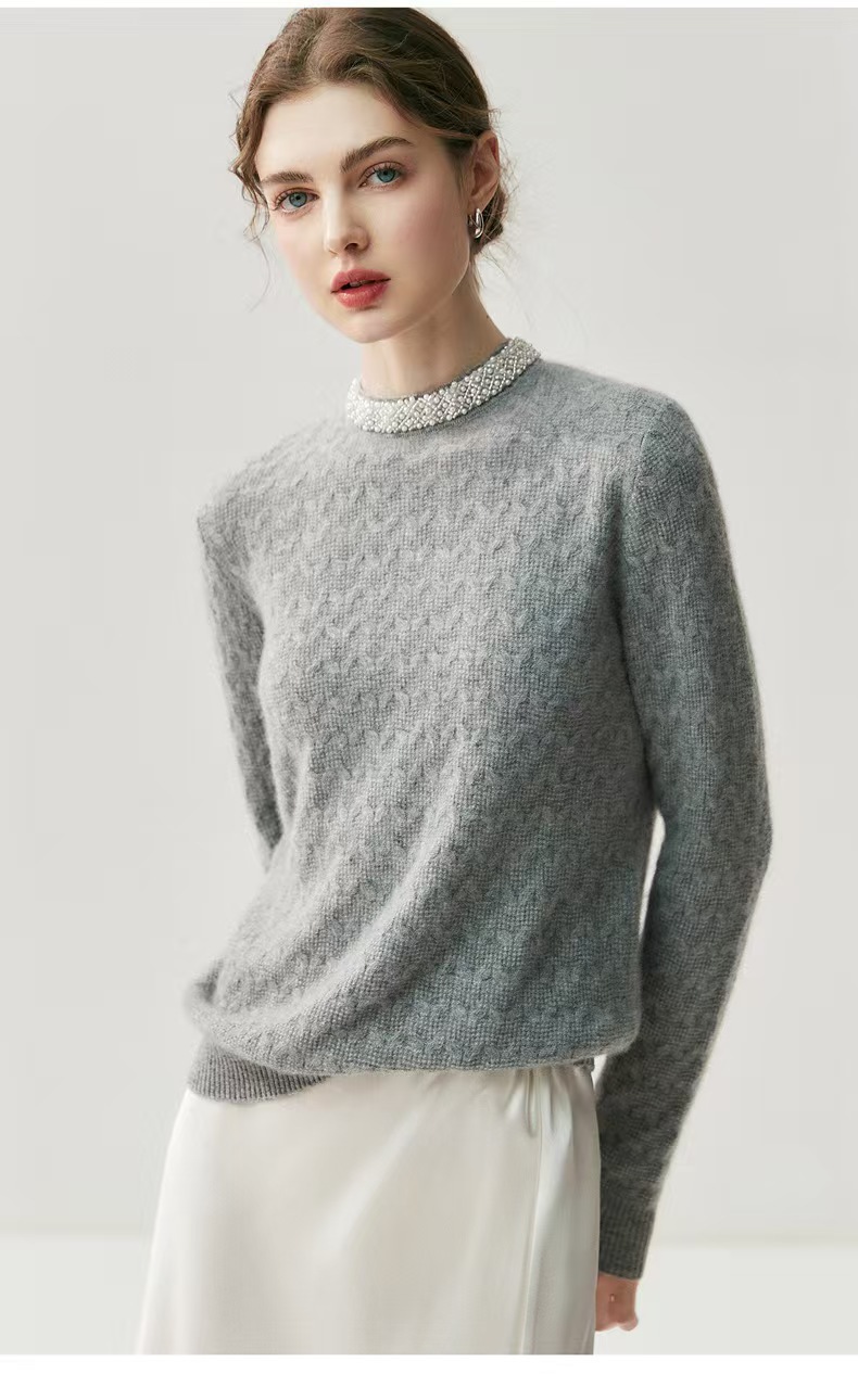 「高货qj」全新升级【铂金会员477/天猫639/差价162】(02333)洛诗琳气质镶钻珍珠领羊绒衫2025秋冬圆领减龄提花毛衣