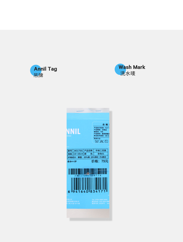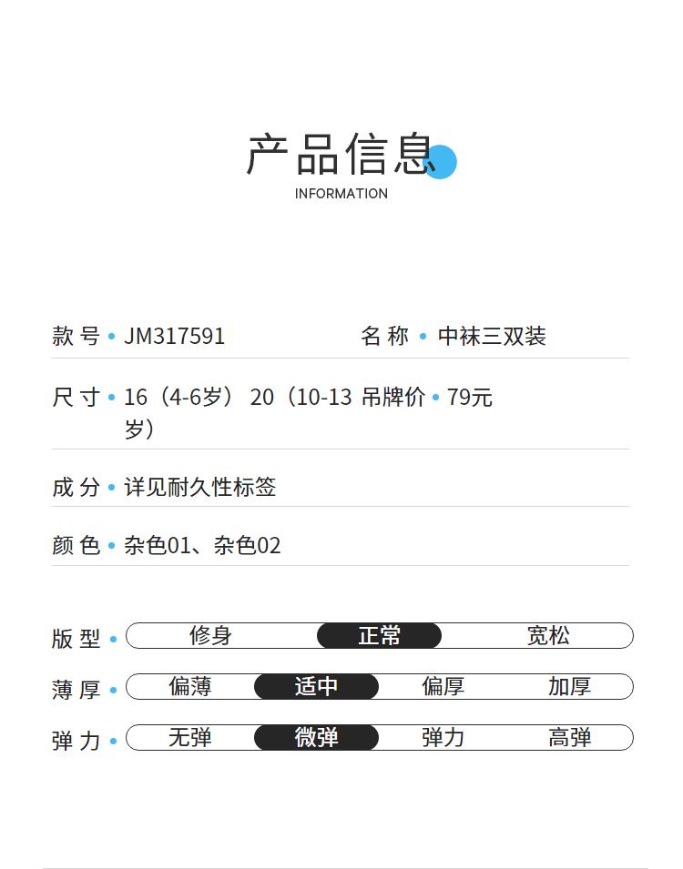 【实体店同款】男童女童中袜三双装春新款安奈儿童装JM317591