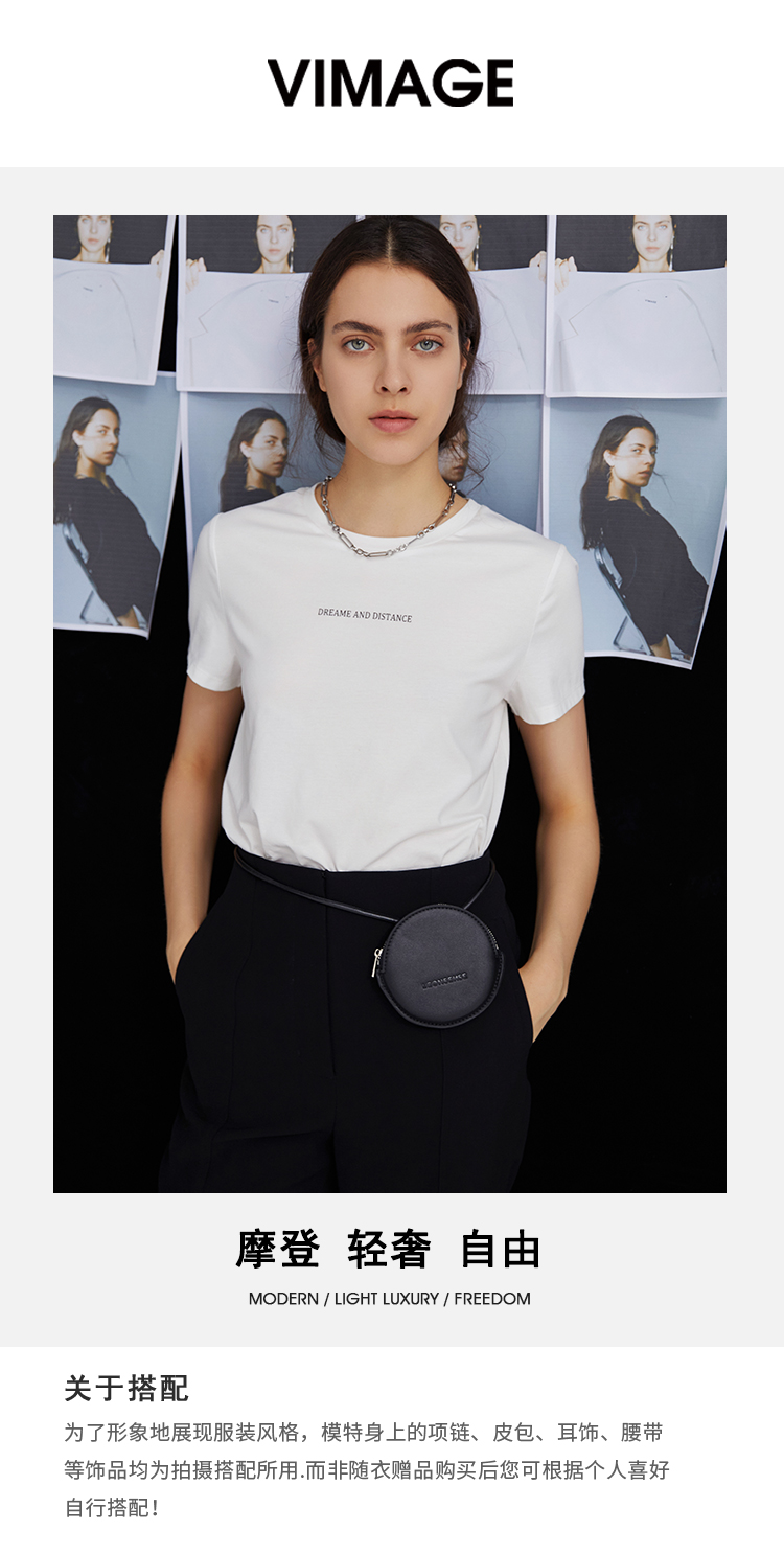 VIMAGE纬漫纪夏季新款简约舒适轻薄透气印花显瘦T恤上衣女V1502119