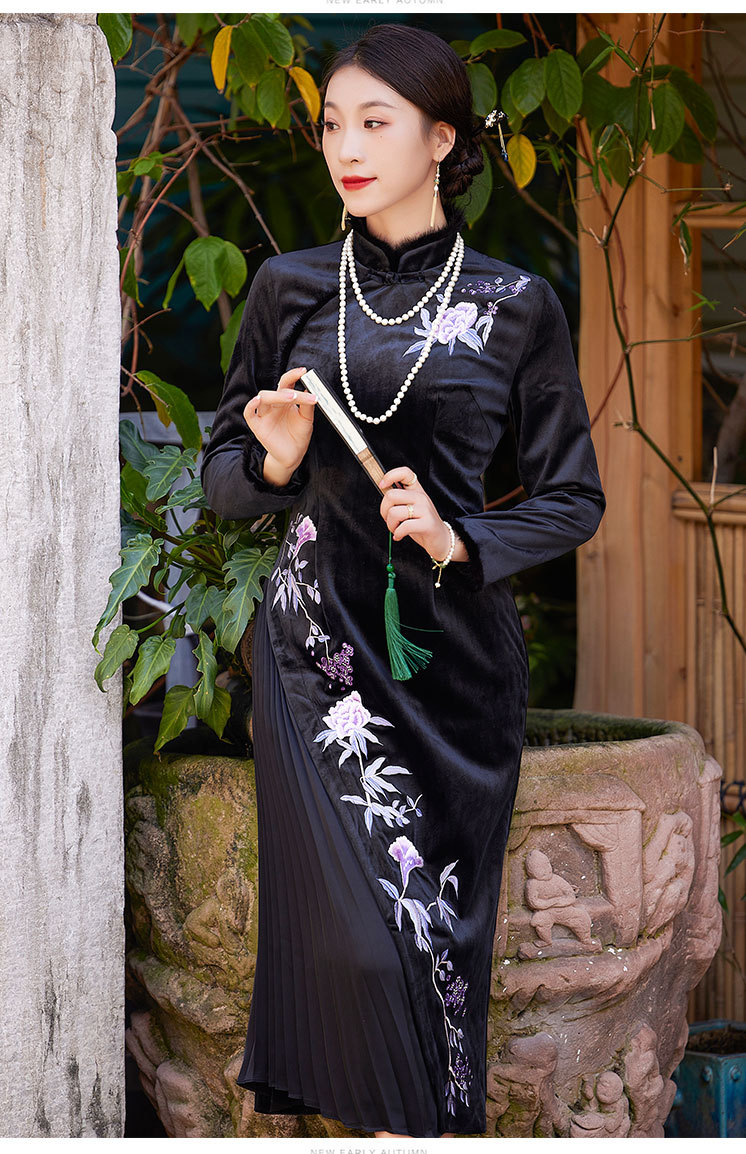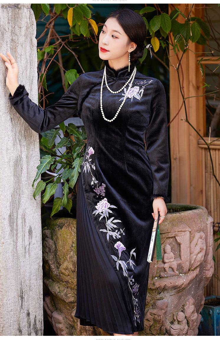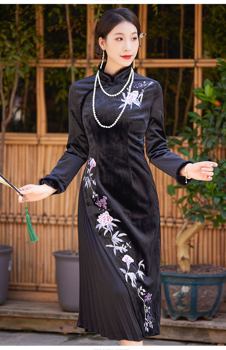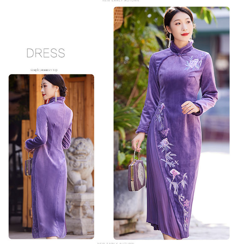 中国风时尚改良旗袍丝绒国潮复古日常修身显瘦连衣裙OG-9075