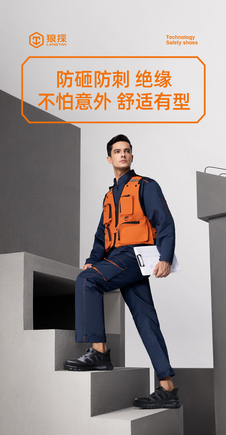 狼探劳保鞋绝缘10KV功能鞋欧标玻纤头防砸凯夫拉中底防刺穿LA劳安认证耐磨安全鞋G210LT黑色