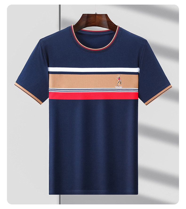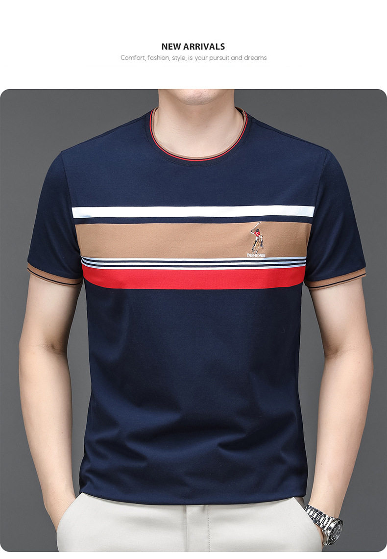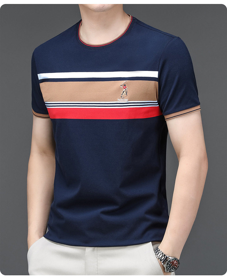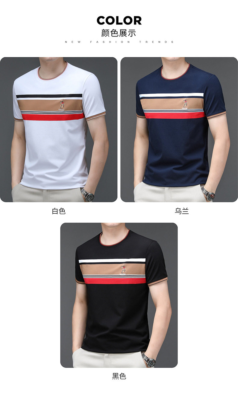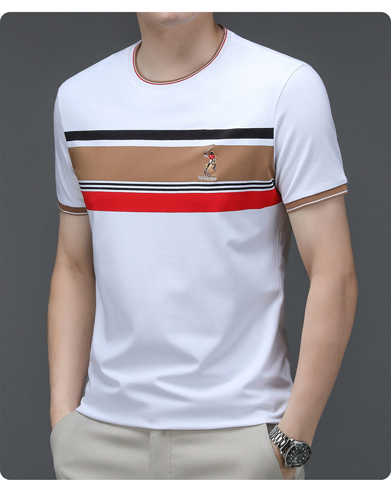 男士短袖t恤条纹撞色新款潮流男装圆领宽条纹短袖T恤 PSL-6182*