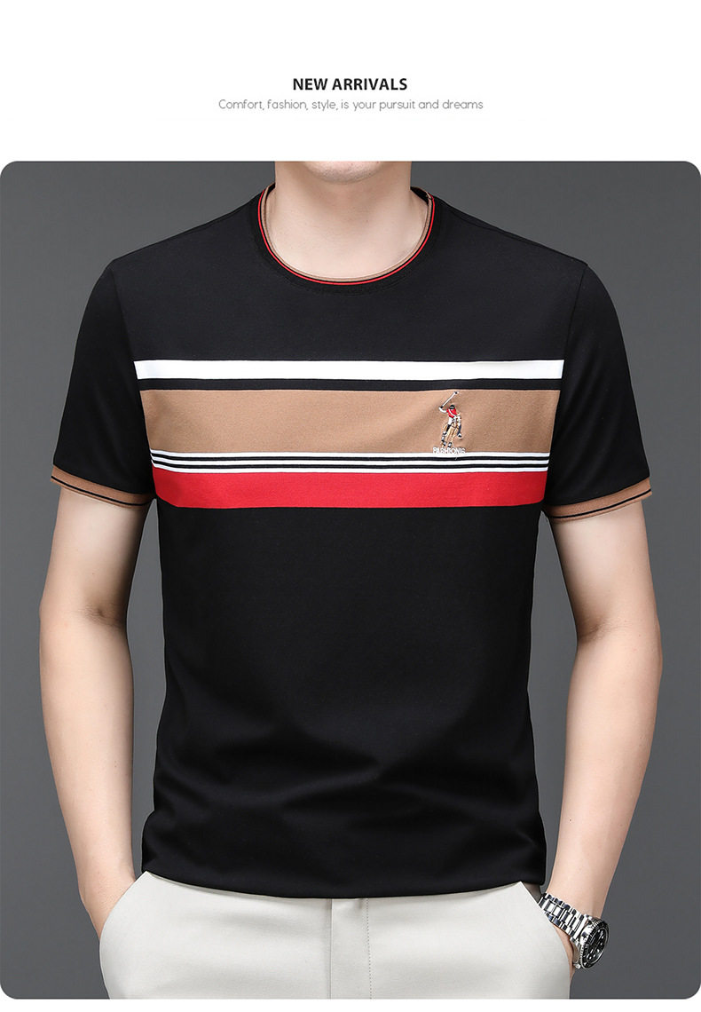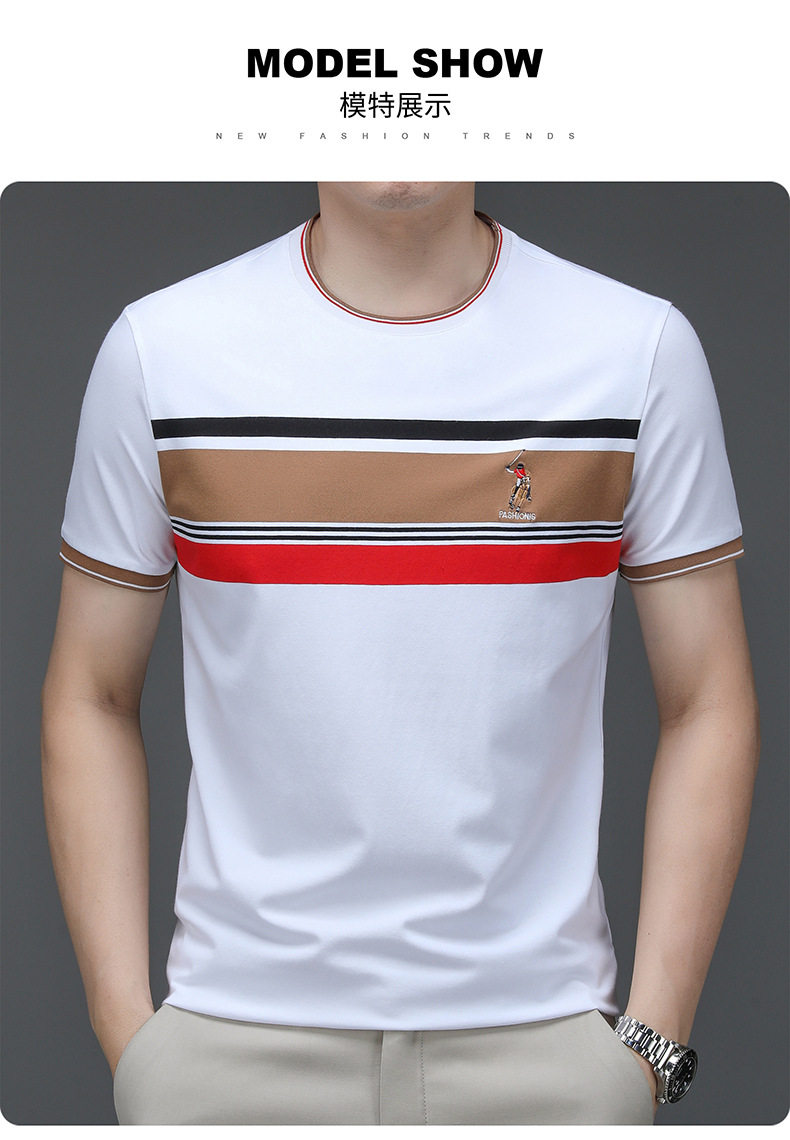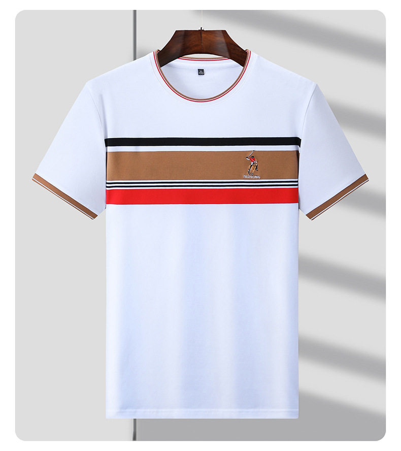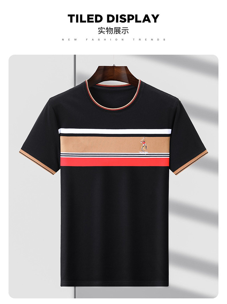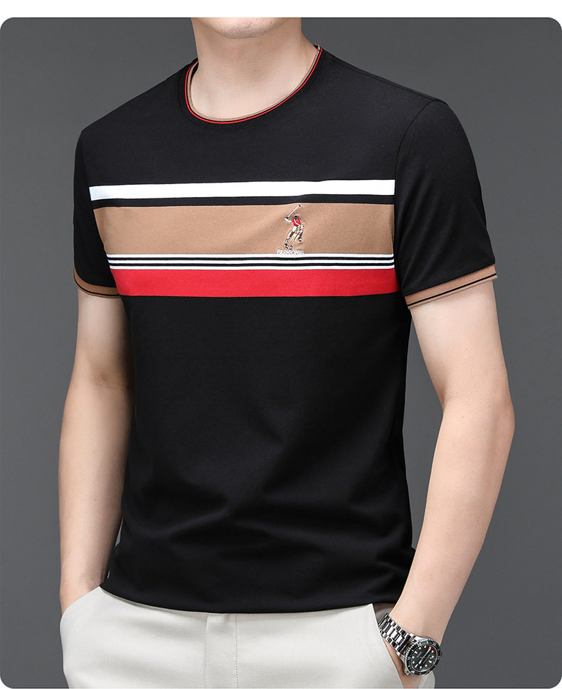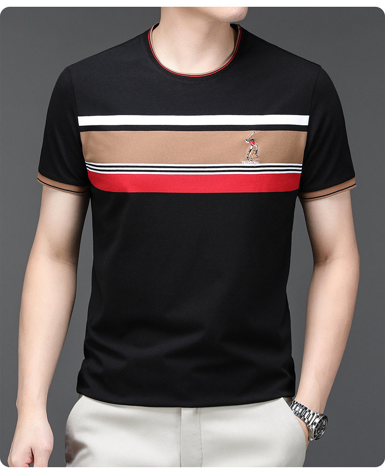男士短袖t恤条纹撞色新款潮流男装圆领宽条纹短袖T恤 PSL-6182*
