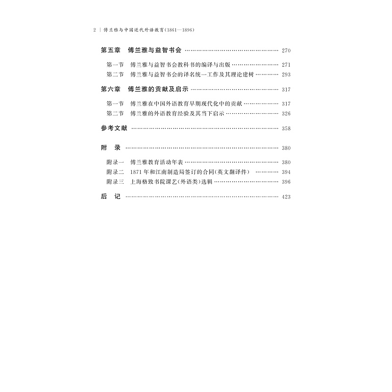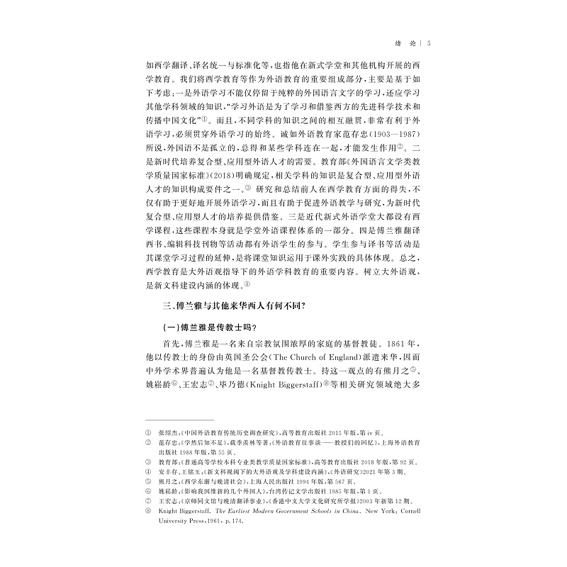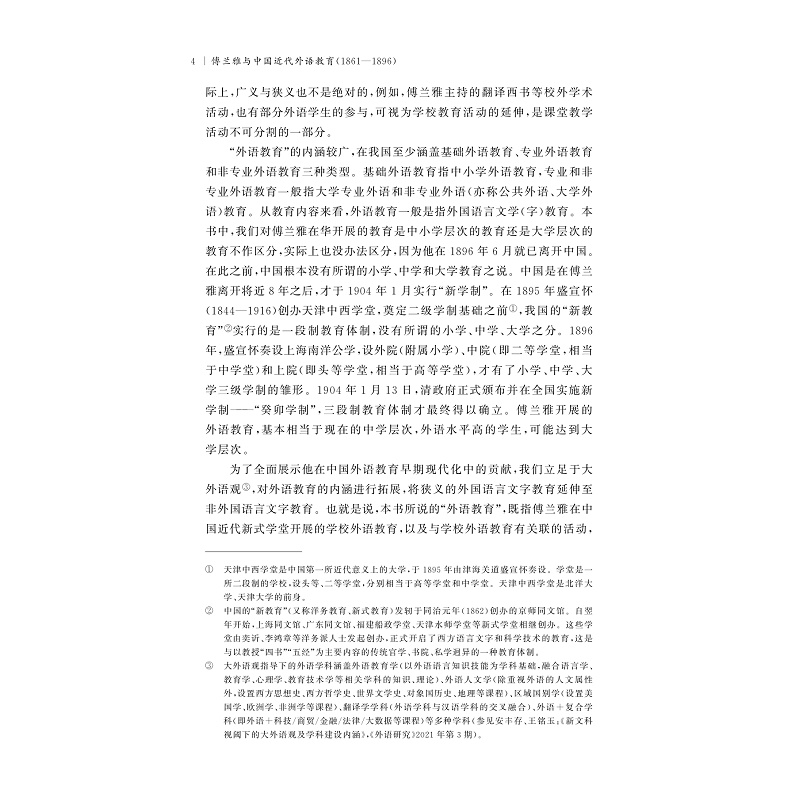 傅兰雅(John Fryer)是著名的来华英籍人士。其在华长达35年(1861—1896)的时间里,穷其精力致力于外语教育事业,为中国培养了一大批服务国家的人才,为中国外语教育早期现代化做出了突出贡献。因其在中国教育史及中西交流史上的重要地位,受到国内外学术界的广泛关注。本书通过爬梳和钩沉文献史料,梳理目前尚未引起足够重视的傅兰雅在中国近代新式文化教育机构从事外语教育活动的史实,全面考察其外语教育活动的路径、模式、经验、价值与启示,以期为当下中国的外语教育改革提供具有学术价值和现实意义的参考。