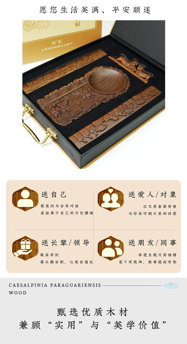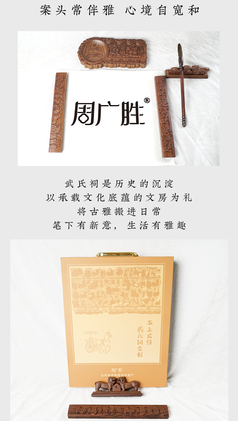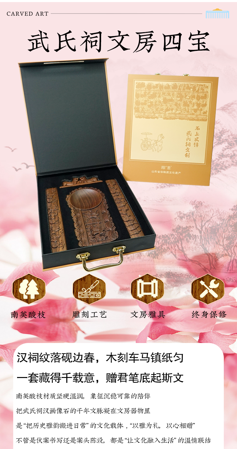 周广胜精选武氏祠文创文房四宝书法国画收藏送礼实木高端礼盒套装