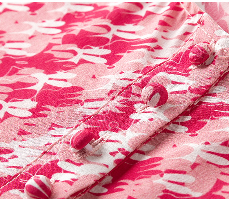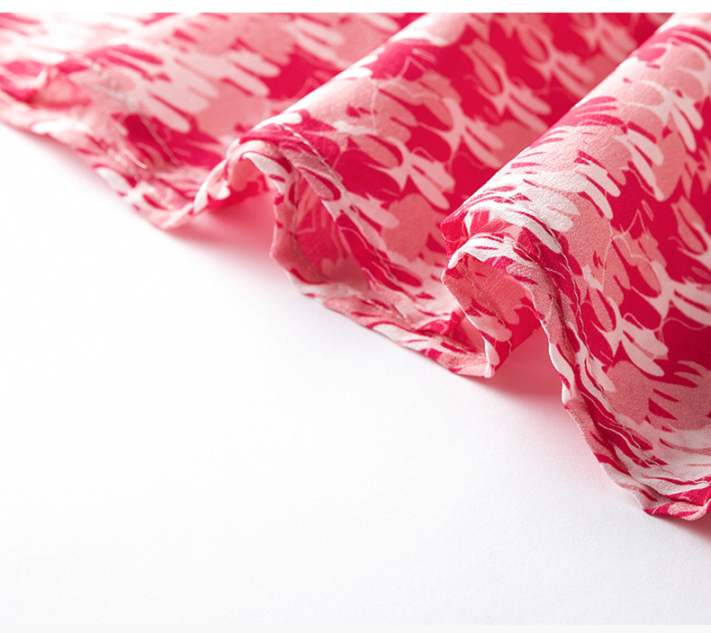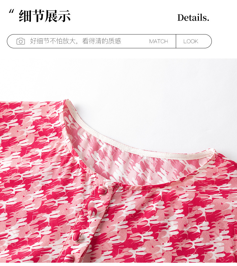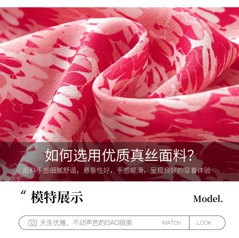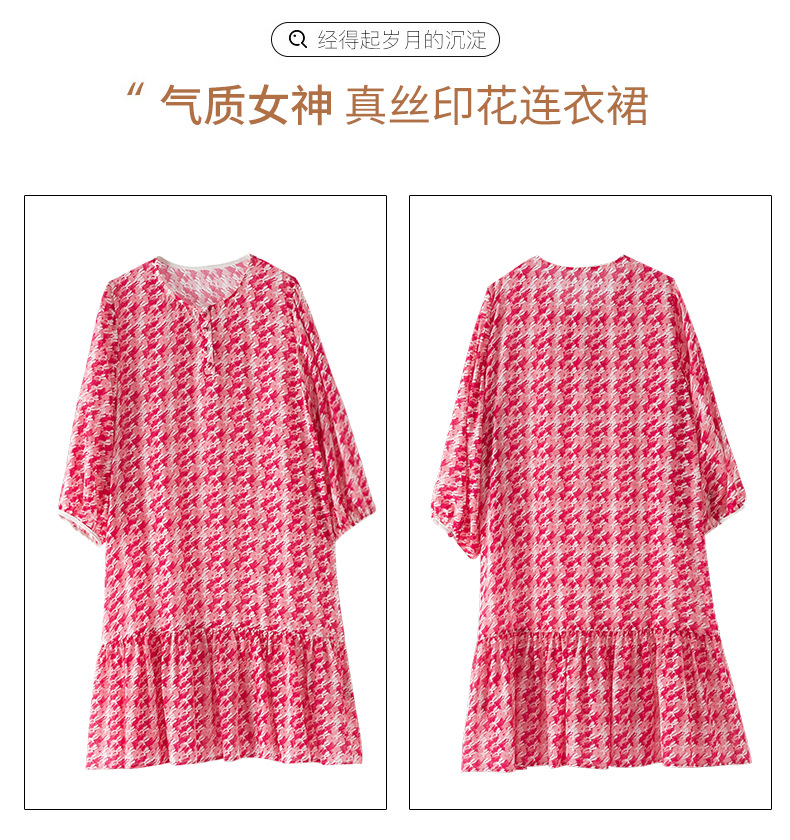 WWM-48807真丝双绉裙子荷叶边红色千鸟格小个子桑蚕丝连衣裙女夏