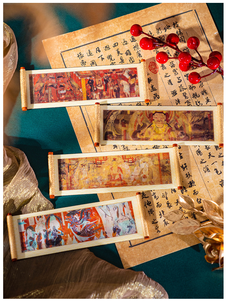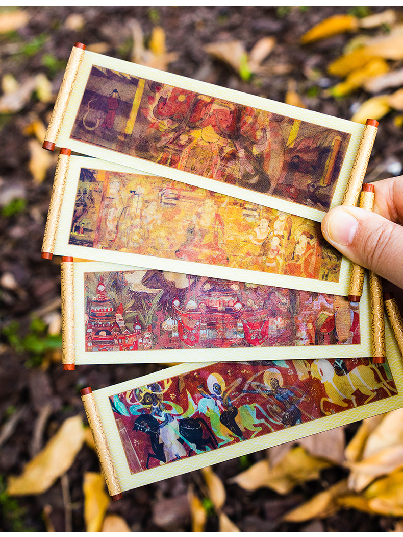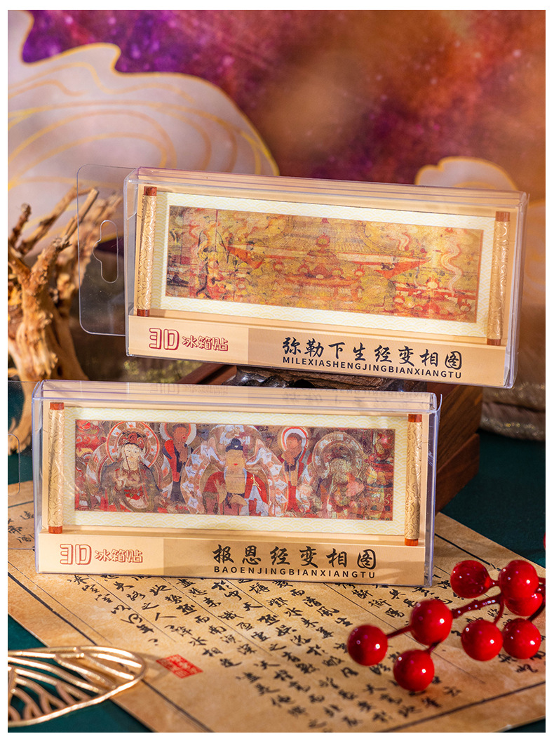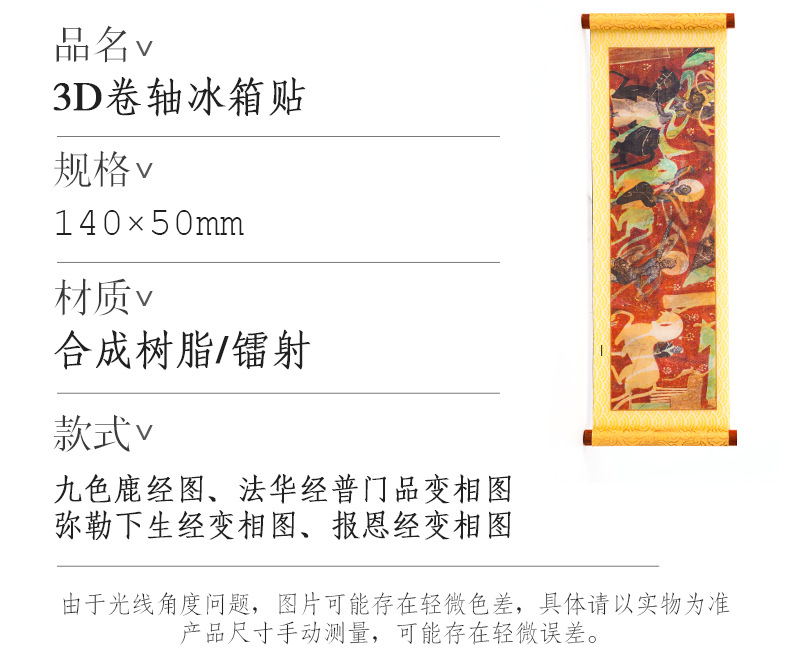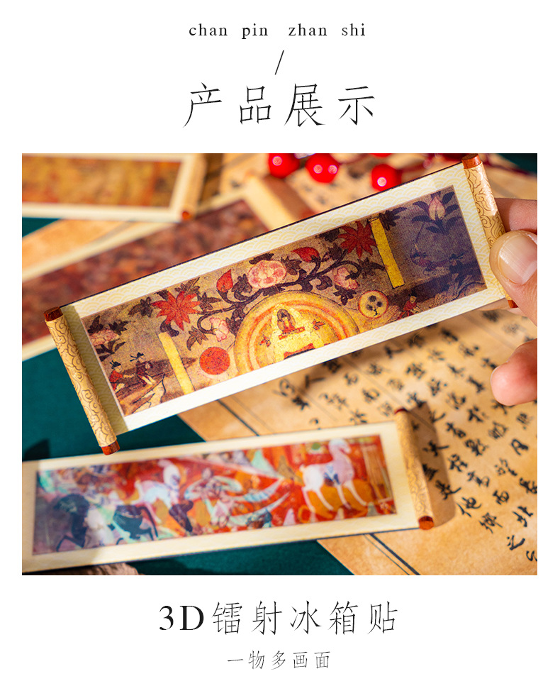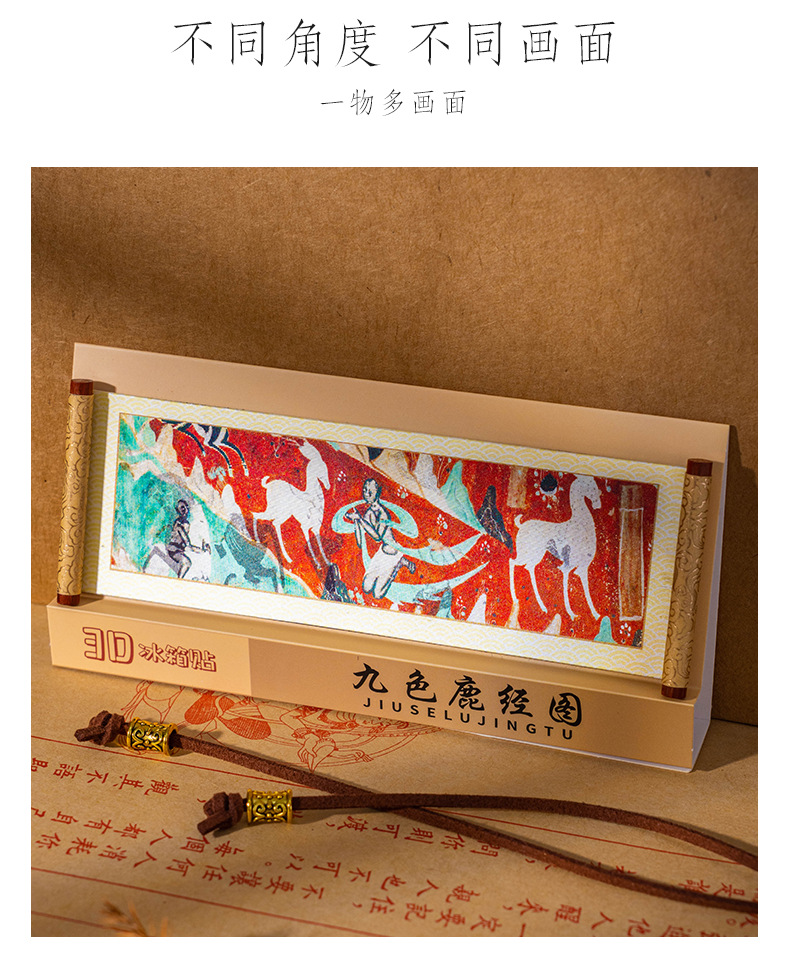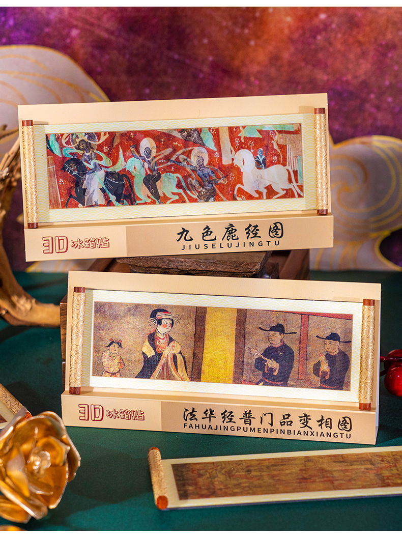敦煌3D卷轴冰箱贴磁吸装饰品莫高窟丝绸之路九色鹿莲开并蒂纪念品