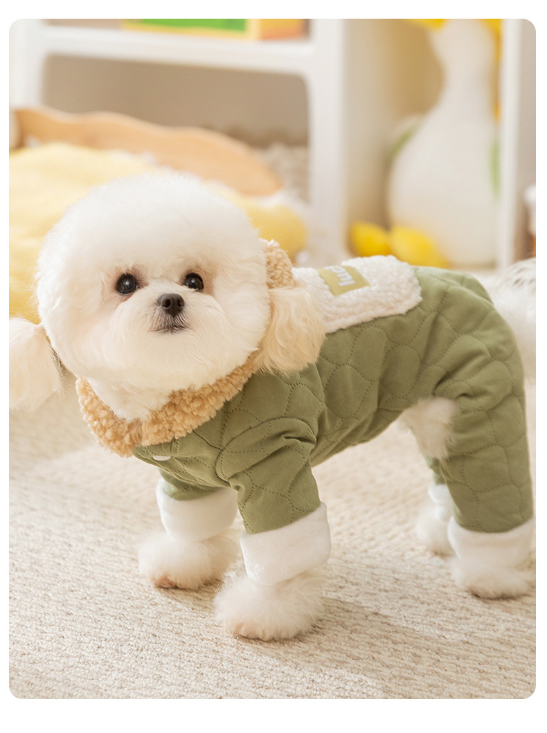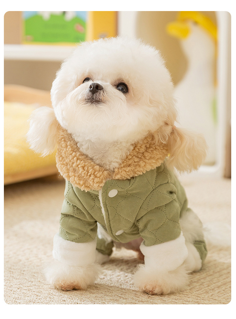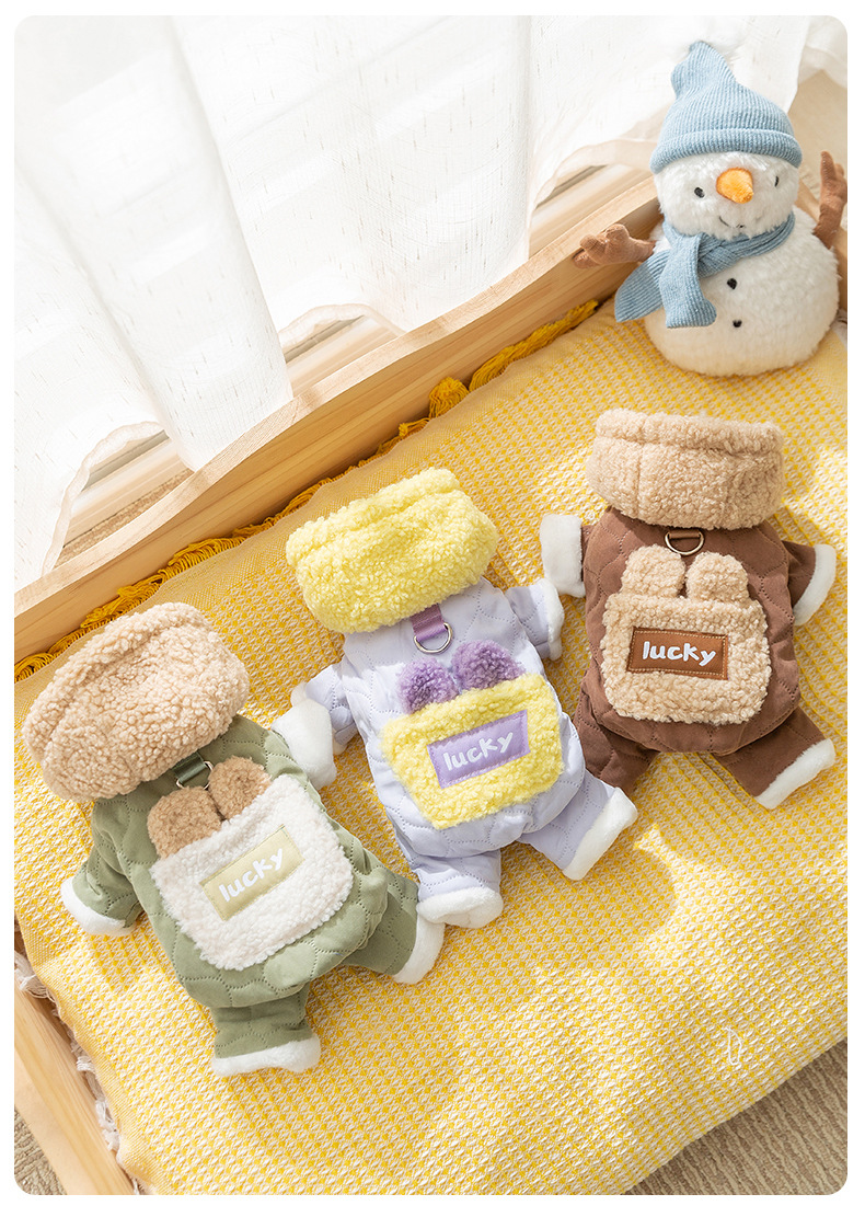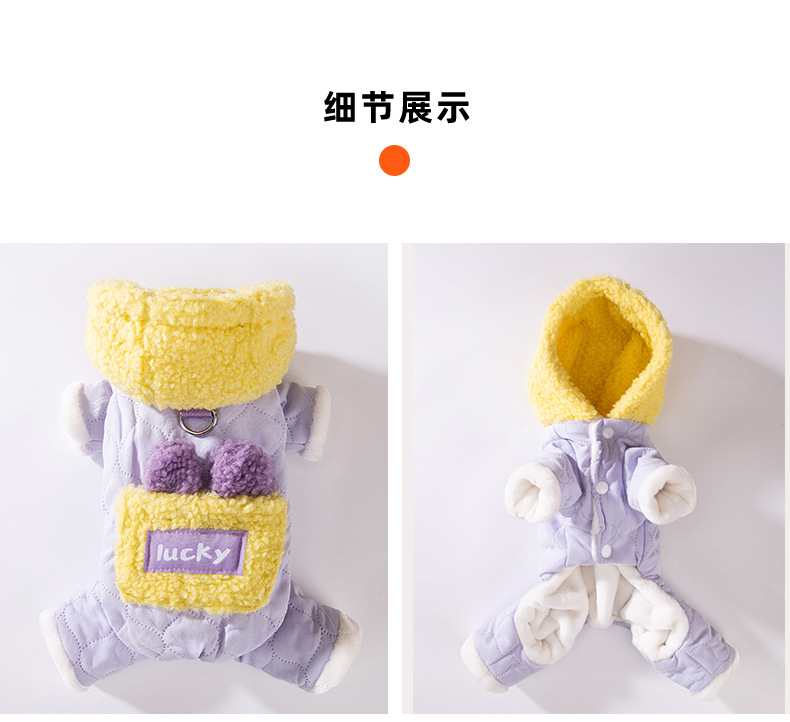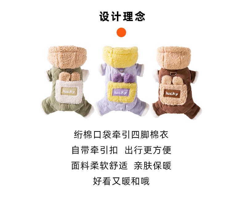 【桃皮绒+摇粒绒亲肤保暖❗️精致小帽子自带牵引扣】狗衣服秋冬季新款绗棉口袋牵引四脚棉衣保暖中小型犬泰迪宠物服饰。hc