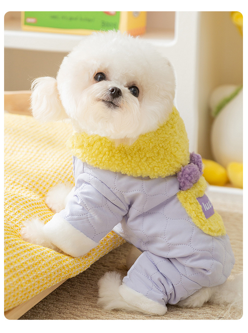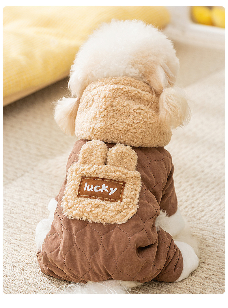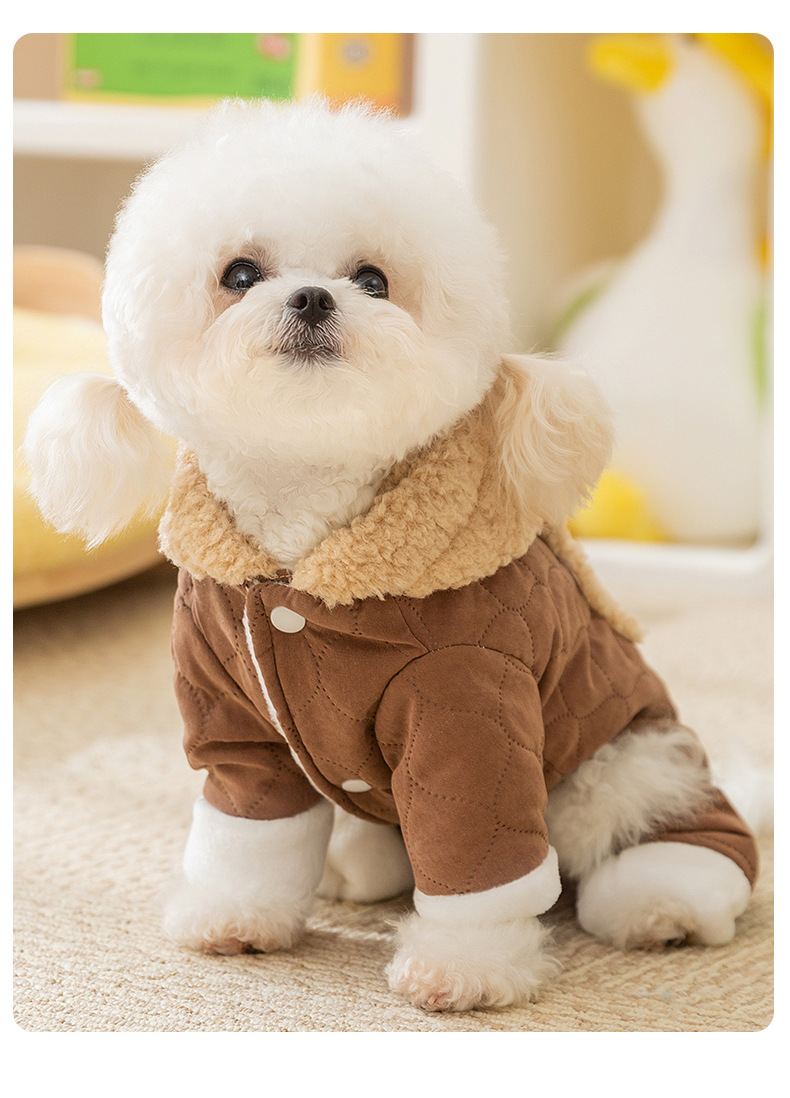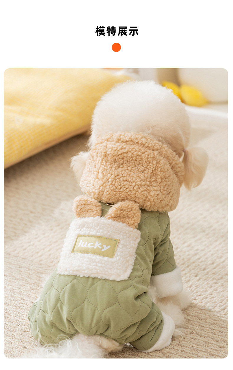 【桃皮绒+摇粒绒亲肤保暖❗️精致小帽子自带牵引扣】狗衣服秋冬季新款绗棉口袋牵引四脚棉衣保暖中小型犬泰迪宠物服饰。hc