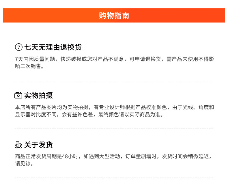 【温馨提示】如您对购买的产品不满意,请从签收之日起七天内申请无理由退换货,请保持商品完好,不影响二次销售,逾期不支持退换哦亲亲。