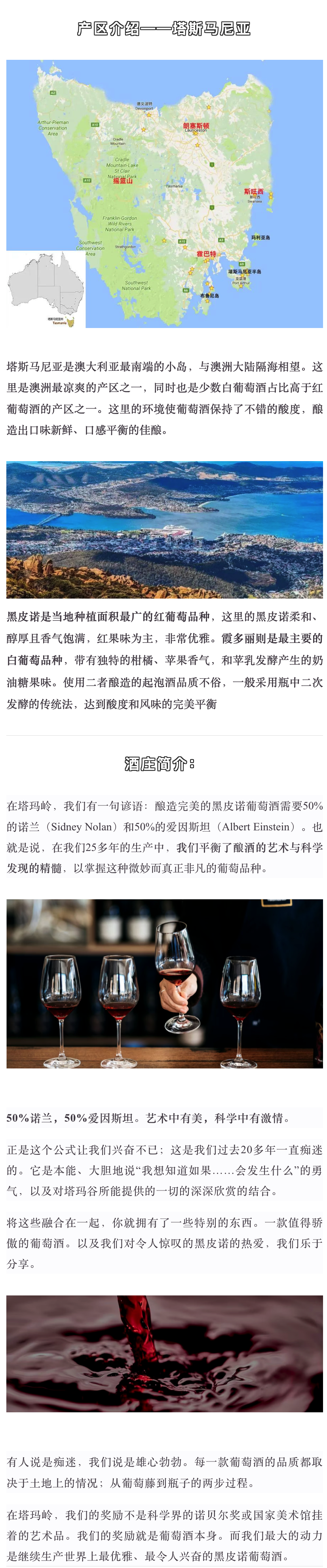 “塔玛岭(Tamar Ridge)是塔斯马尼亚最大的酒庄之一(与澳洲大陆的一些巨头相比而言),但它的品质从未打过折扣。这款黑皮诺就是一个绝佳的例子,展现了塔斯马尼亚北部的浓郁与优雅。它是一个风味的宝库:酸爽的红醋栗和蓝莓果香,搭配着泥土般的、鲜味十足的风味,如腌制肉类、五香粉和石墨。优雅感在中等酒体的口感中得以展现,归功于其如利剑般的酸度。它给人一种多孔的感觉,仿佛在沙粒间流淌,同时又十分集中:酸度与独特的单宁结构之间的一场舞蹈。这是一款极具塔斯马尼亚特色的葡萄酒,现在即可饮用,直至2028年。——克里斯蒂娜·皮卡德(Christina Pickard)”