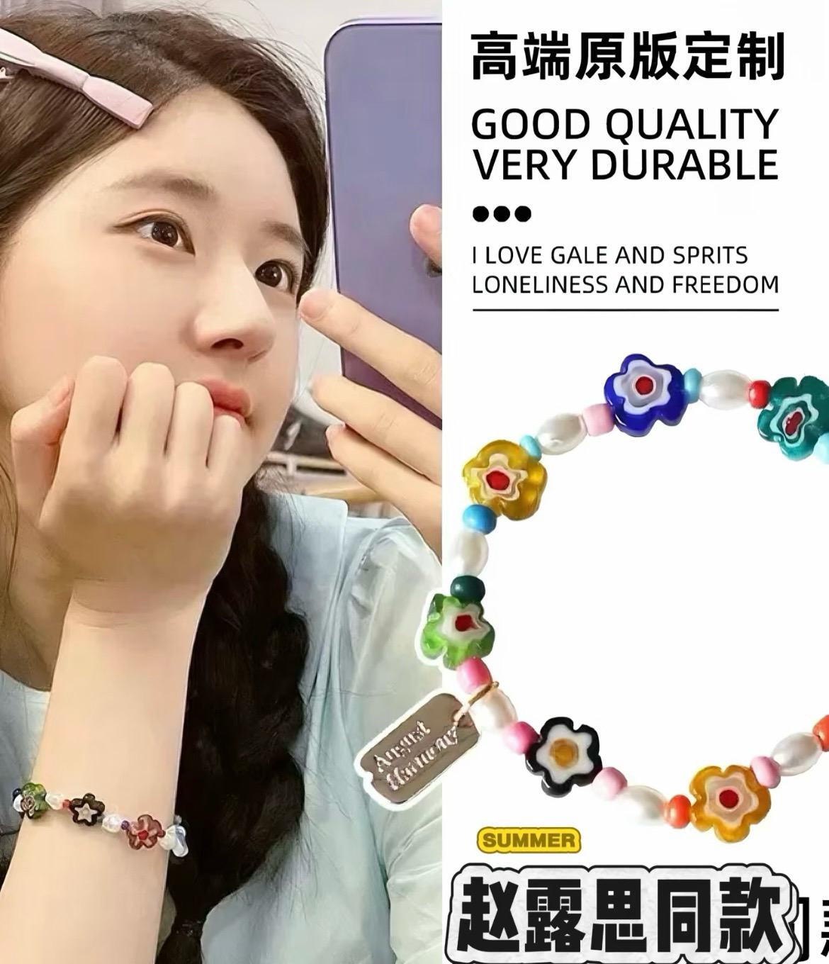 最后一批了,数量不多啦。可爱到想焊在手上的小花手链,五彩的小花配色好绝,戴在手腕上像把夏天的小花园搬来了,精致又可爱,甜妹氛围感拉满!内娱女明星人手一条