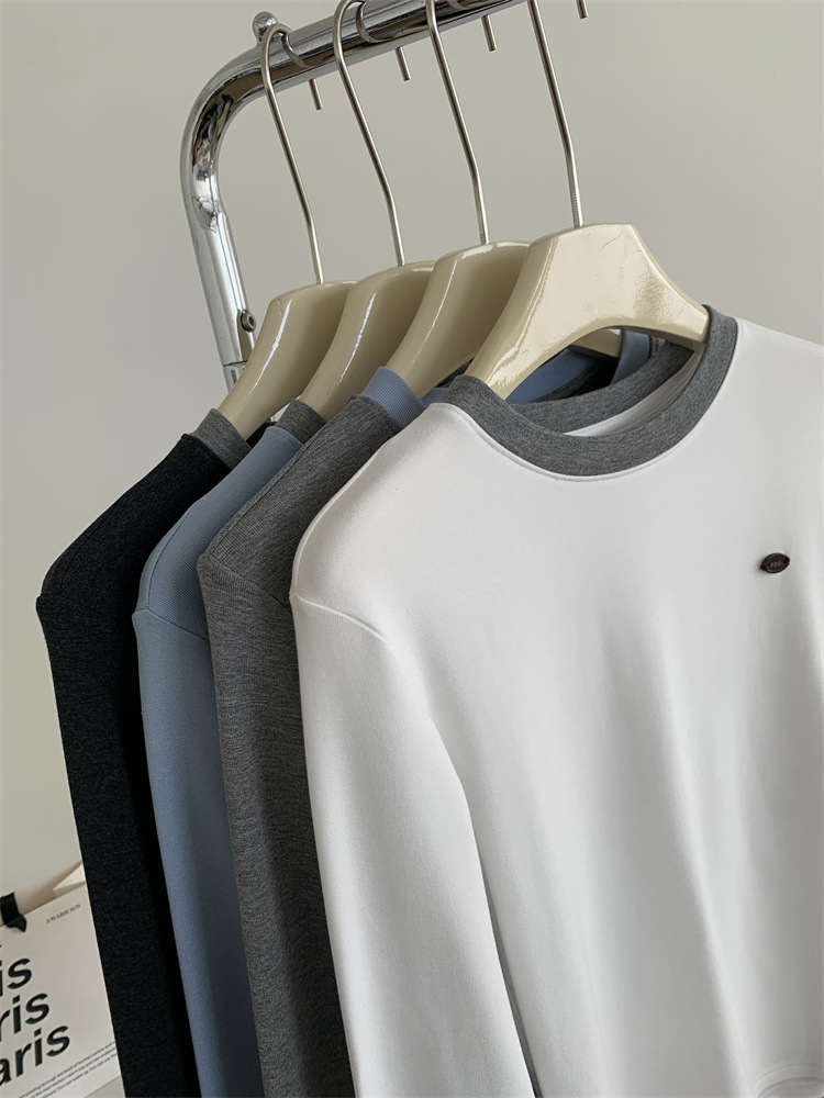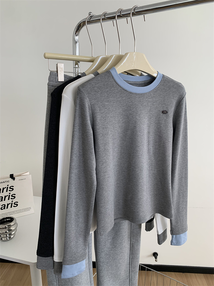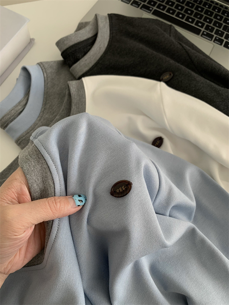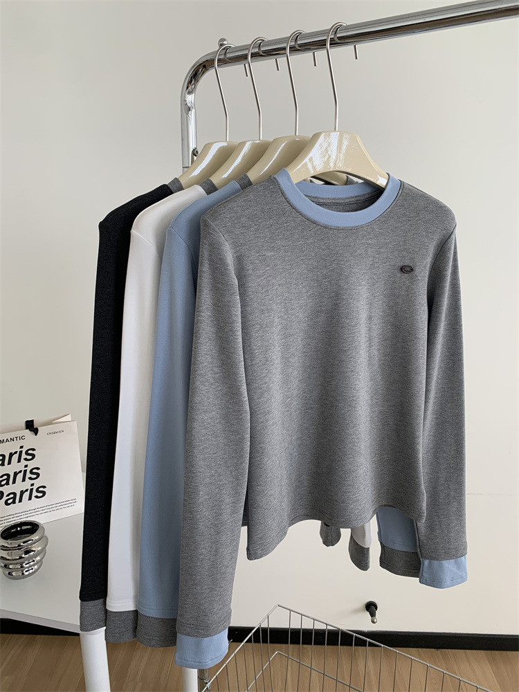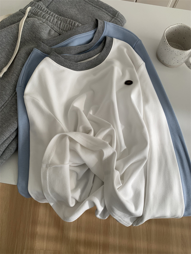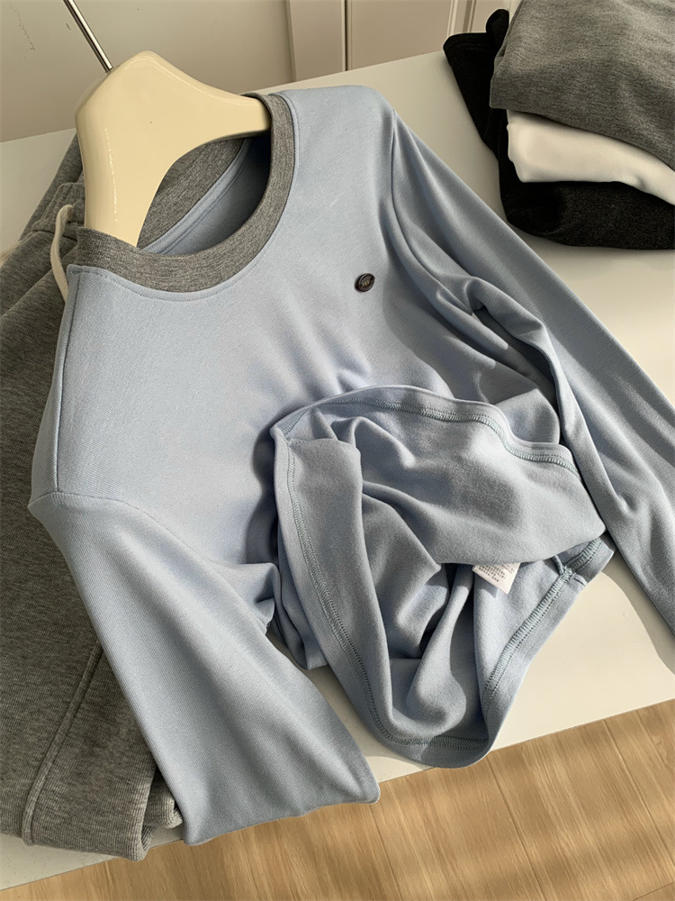 丁摩 拼色圆领长袖抓绒T恤女冬季钉扣仿羊绒加厚打底衫5ZF-3357