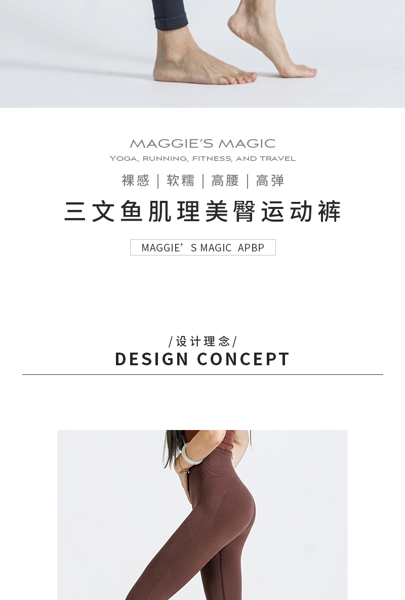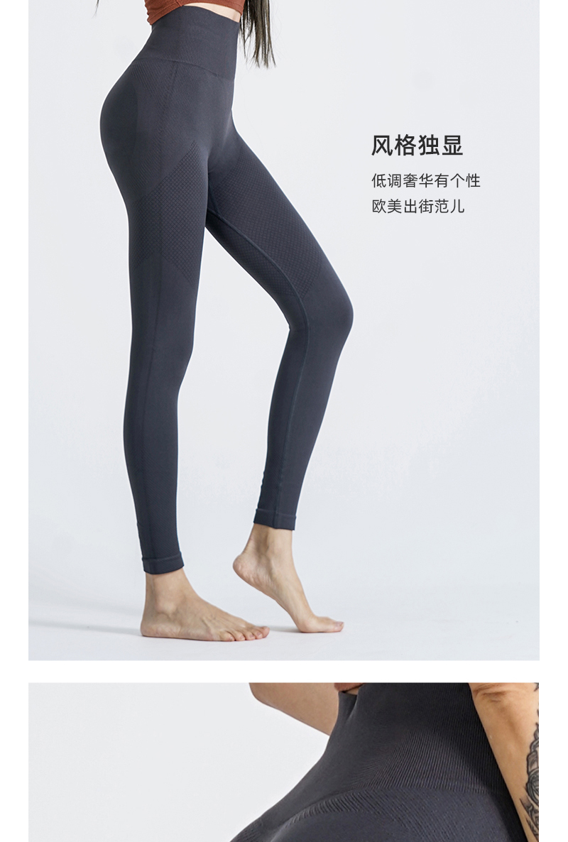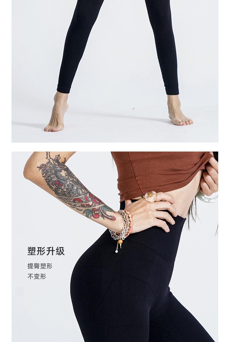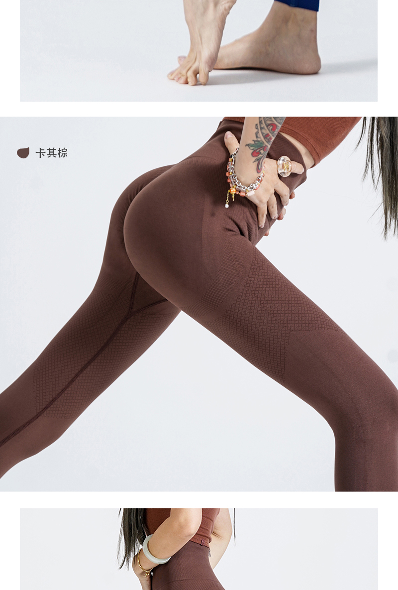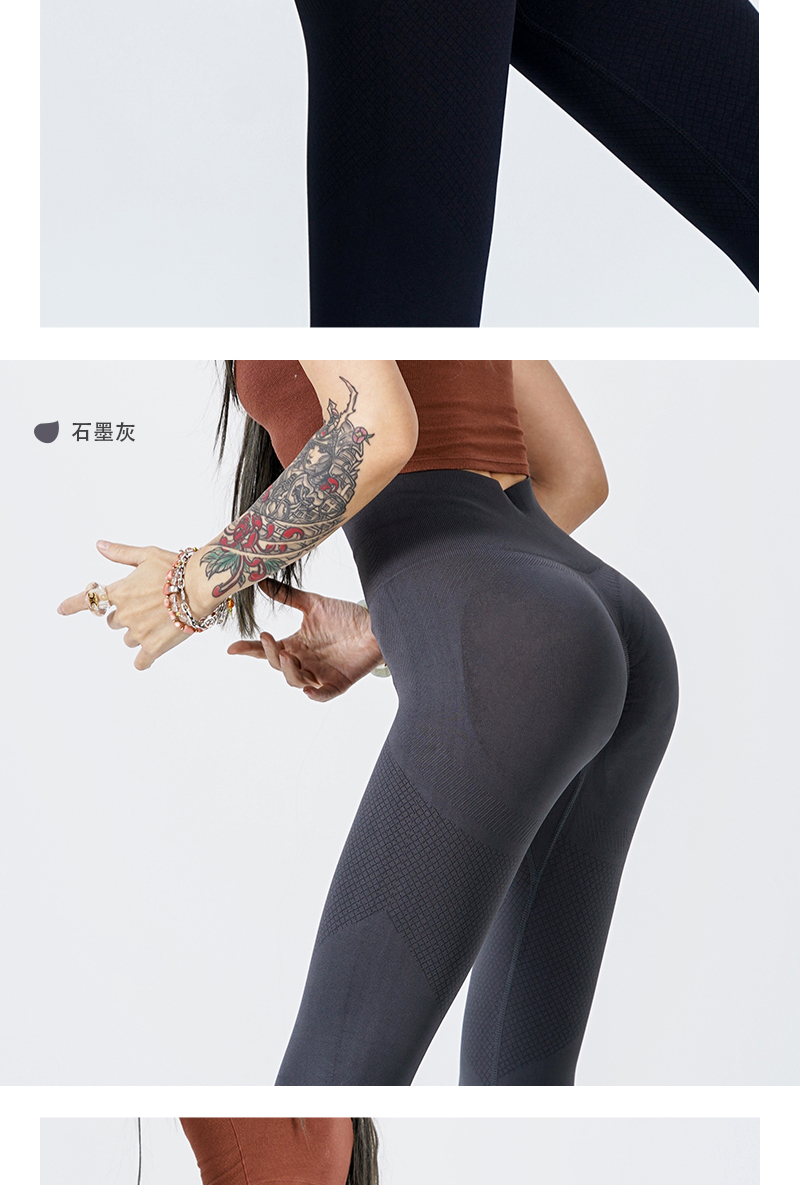 新款塑型裤高腰弹力蜜桃臀透气运动三文鱼肌理微压纯色美臀运动裤