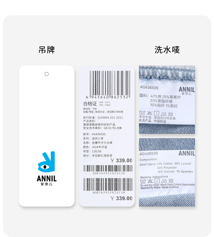 女童微喇泡芙牛仔九分裤新款安奈儿童装实体店同款AG436595