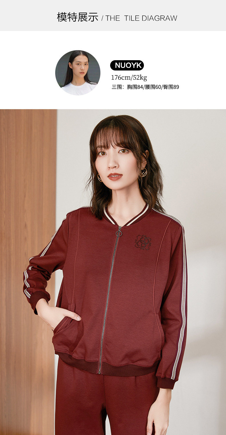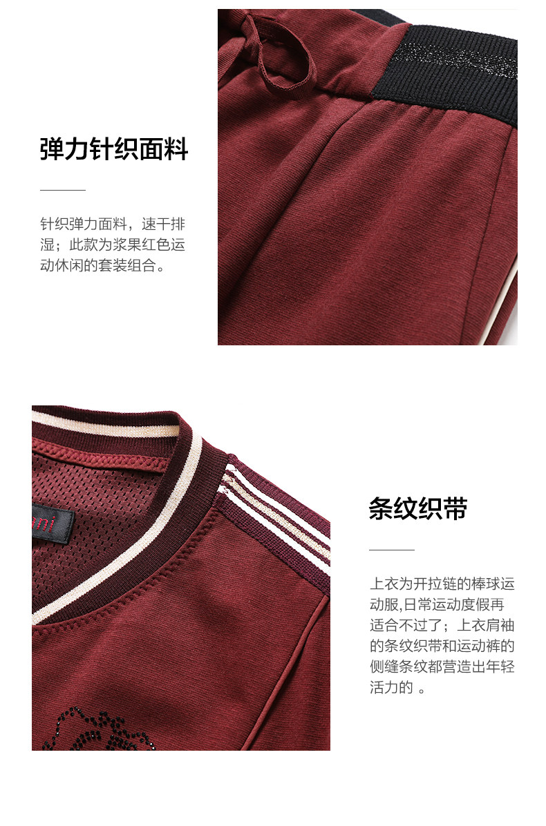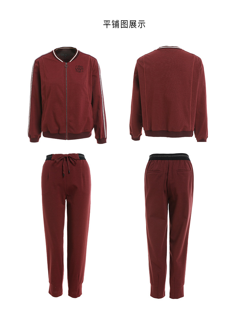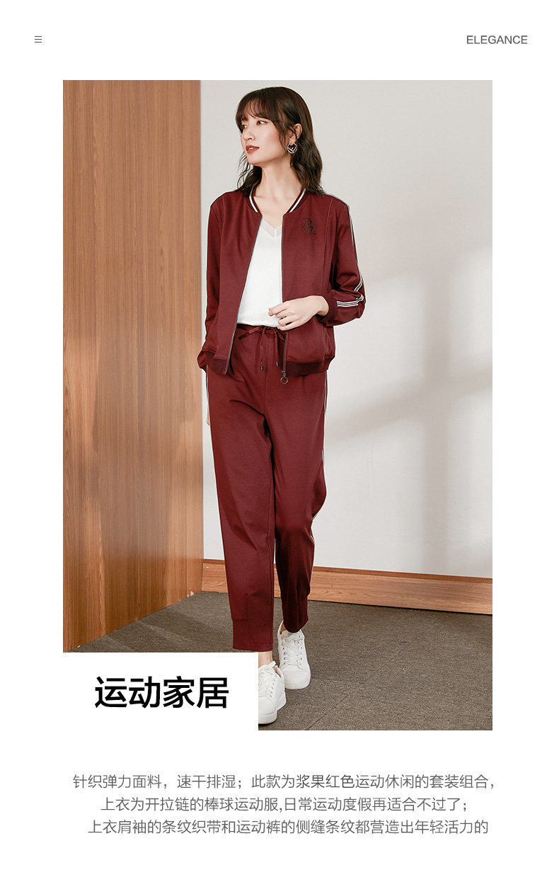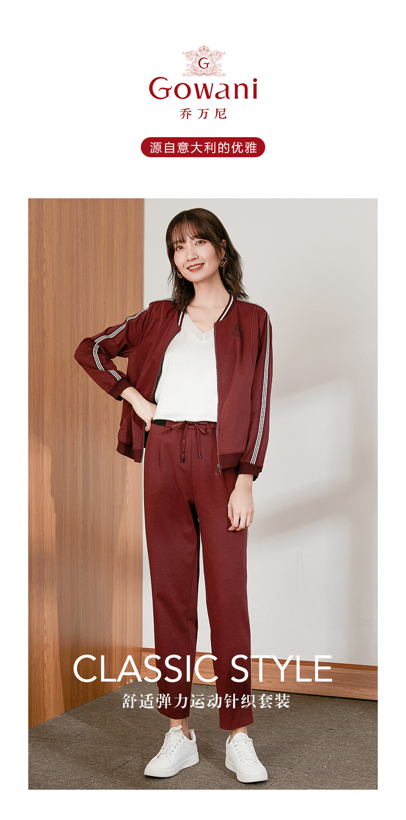 乔万尼秋季新款针织舒适弹力红色棒球服休闲日常家居运动套装ES3G608