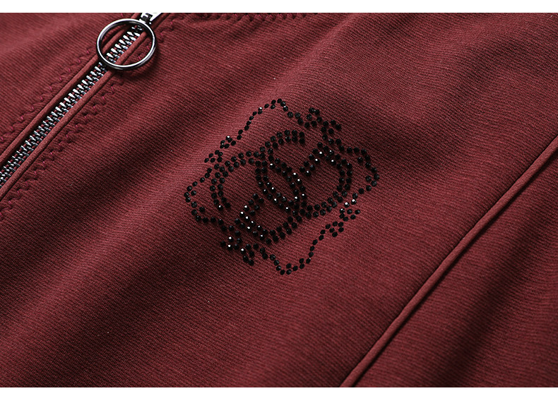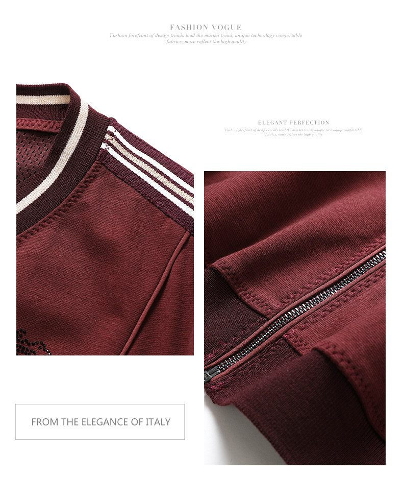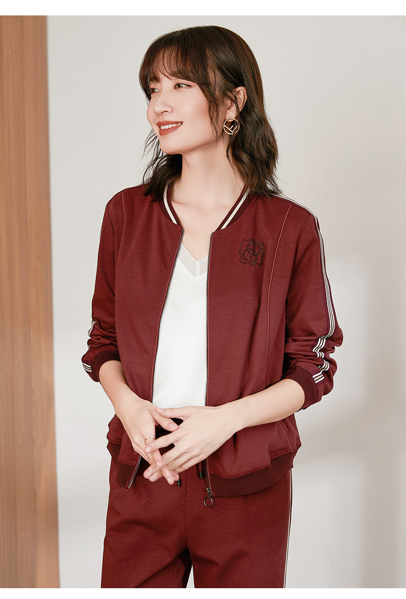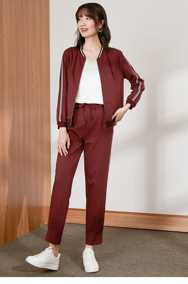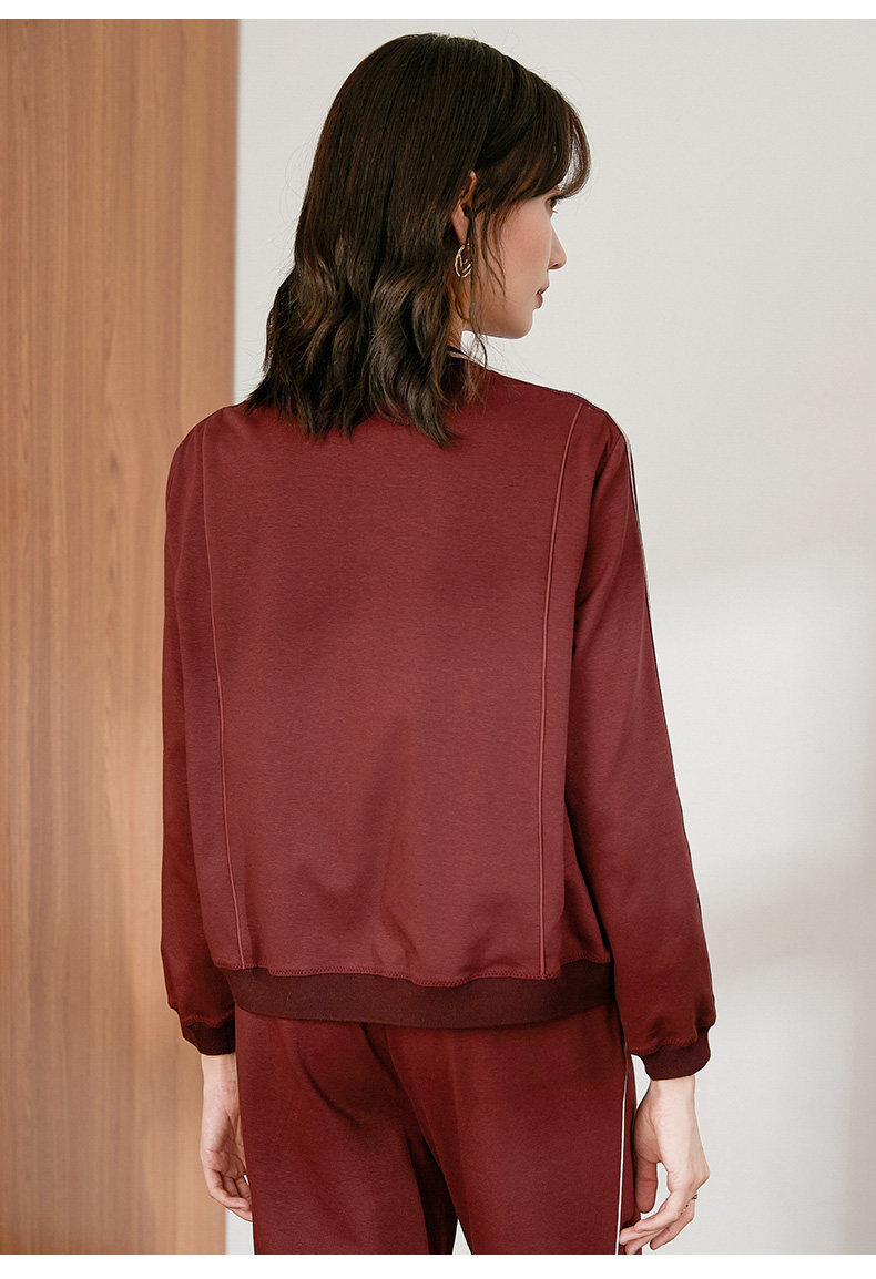 乔万尼秋季新款针织舒适弹力红色棒球服休闲日常家居运动套装ES3G608