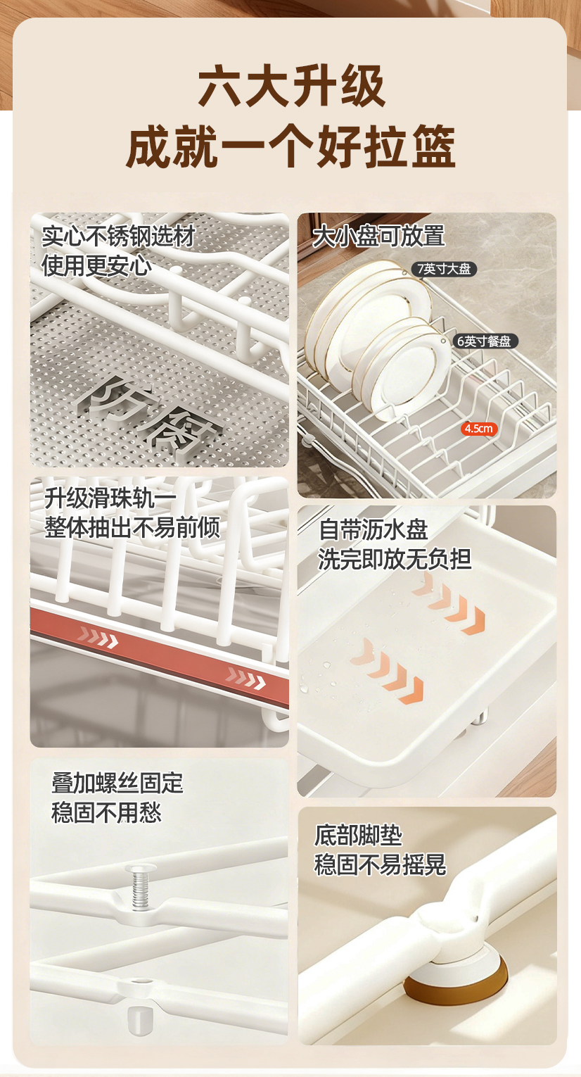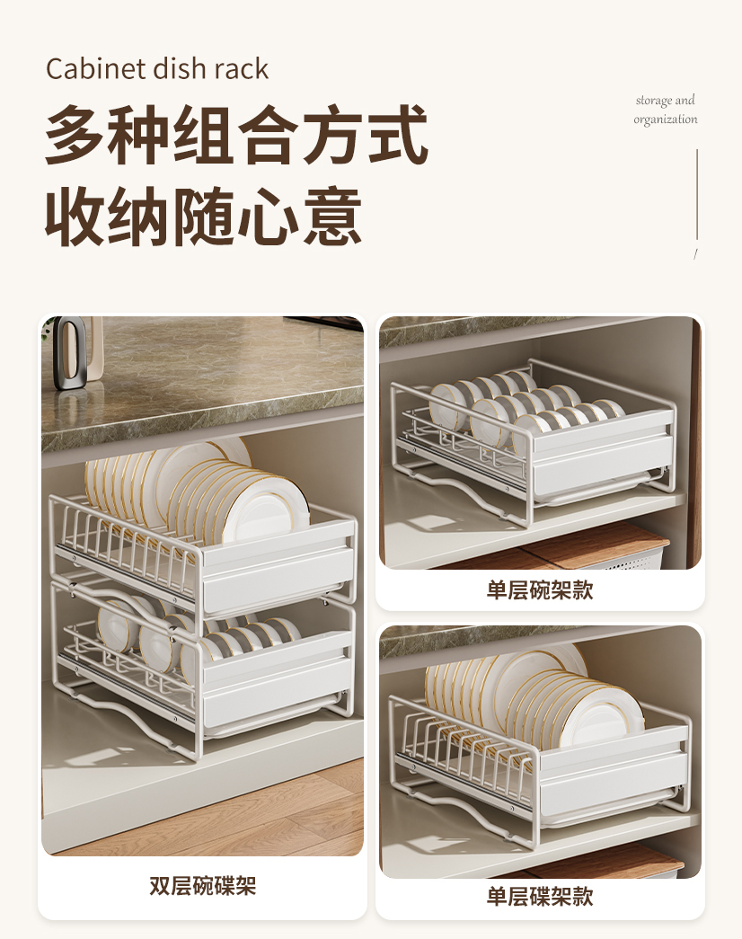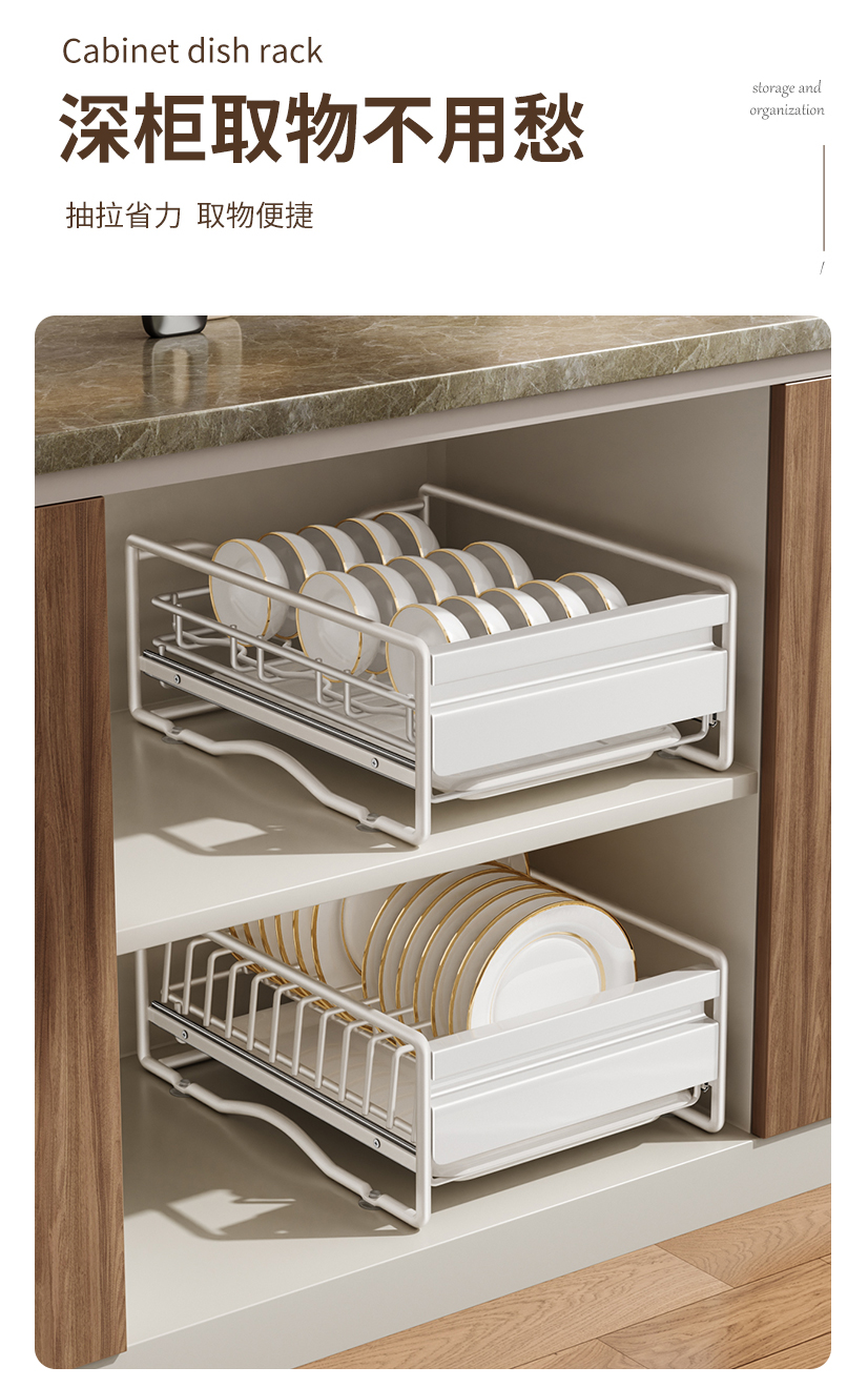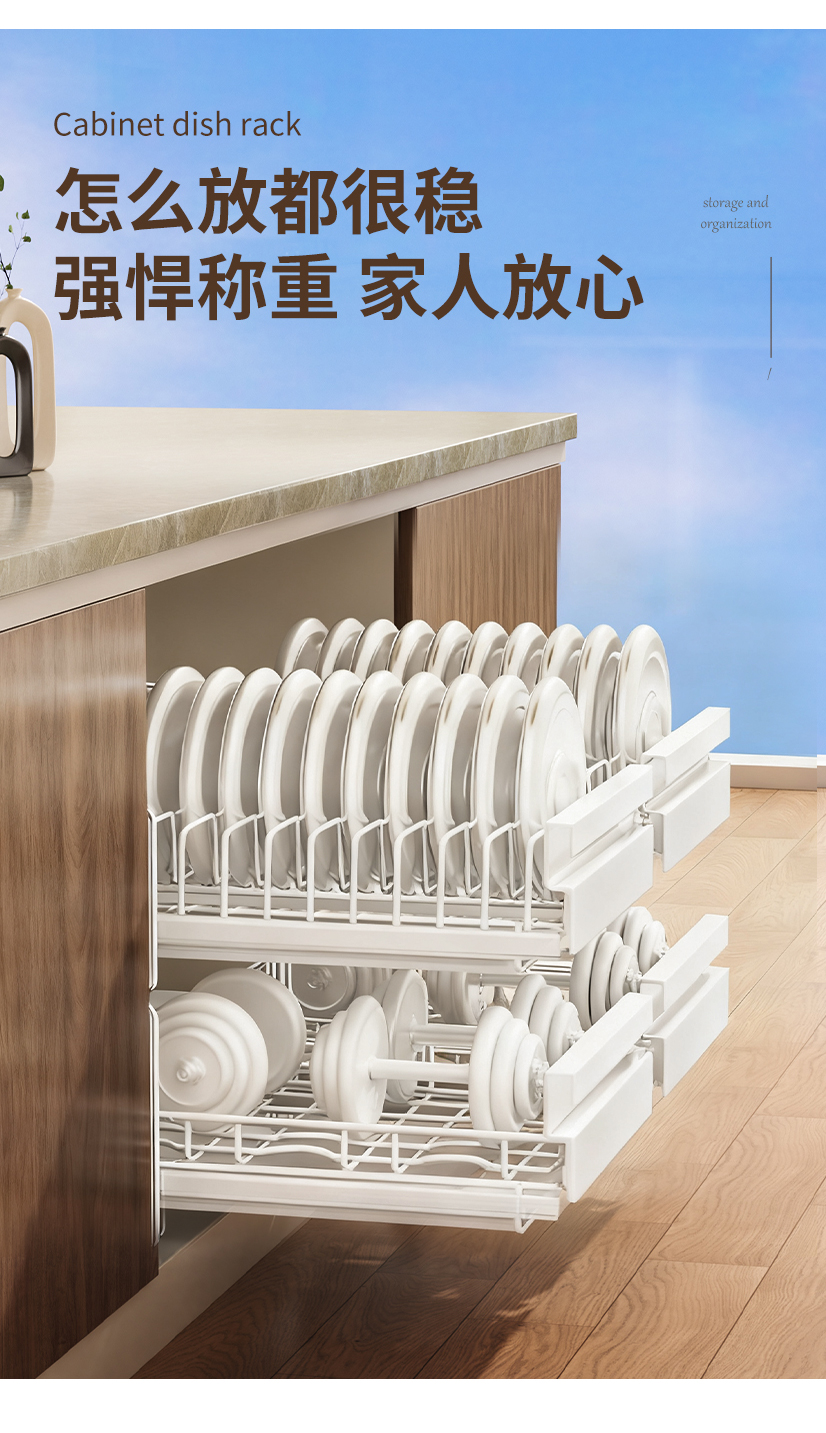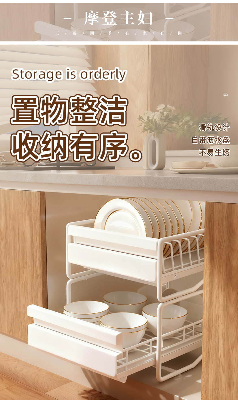 摩登主妇碗碟收纳架橱柜内厨房多功能抽屉式拉篮置物架碗盘沥水架