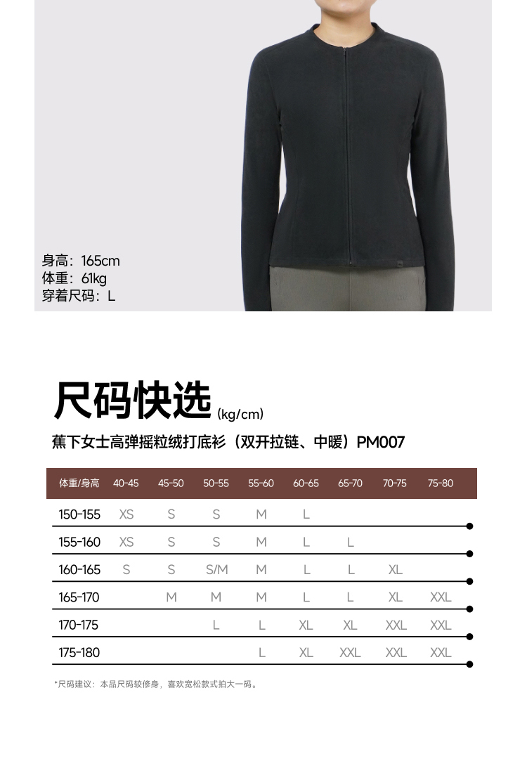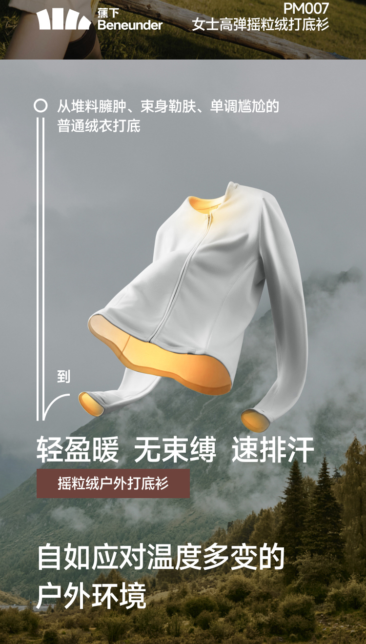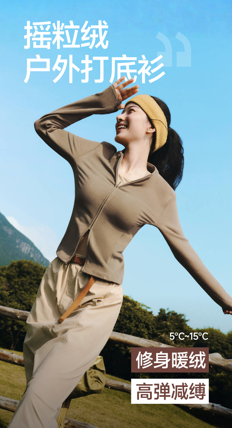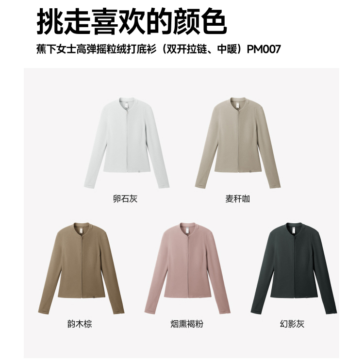 【蕉下精选】蕉下女士高弹摇粒绒打底衫(双开拉链、中暖)PM00725