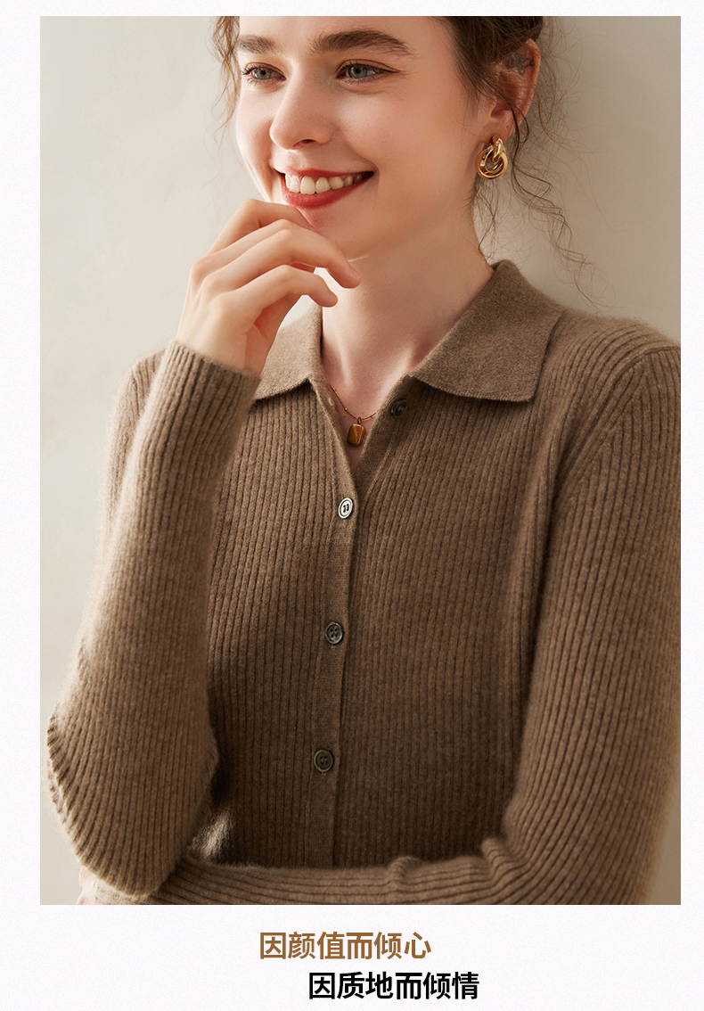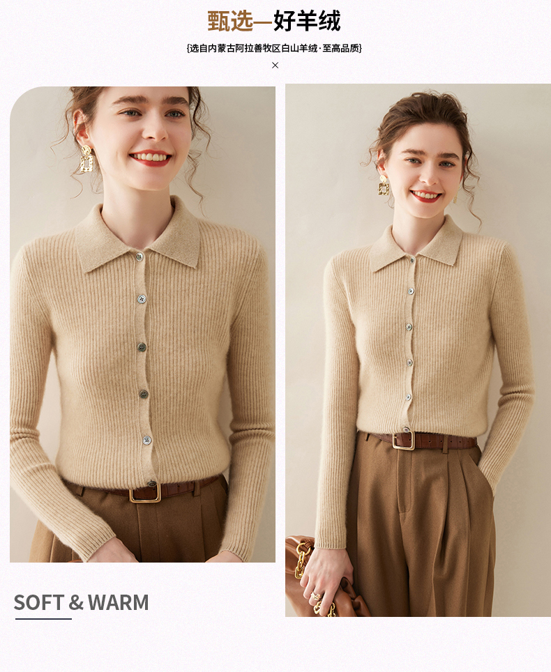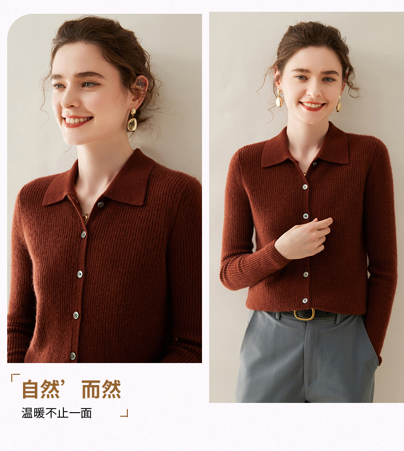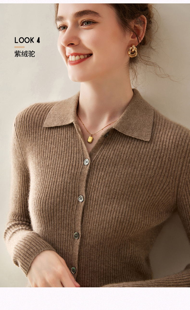 纤束马抽条衬衣领羊绒衫 NZ-604
